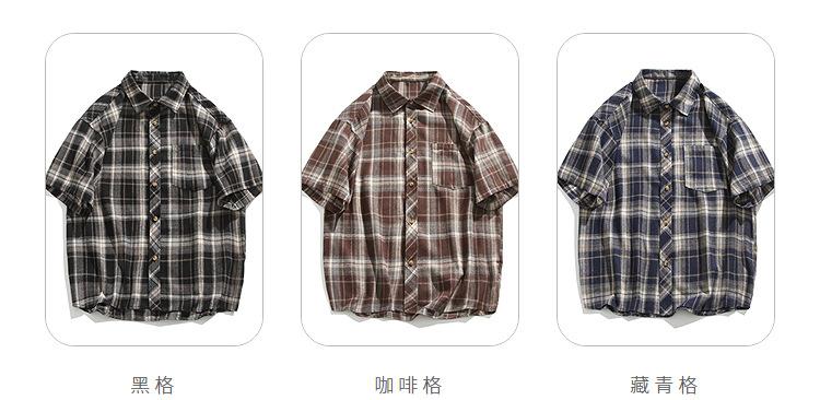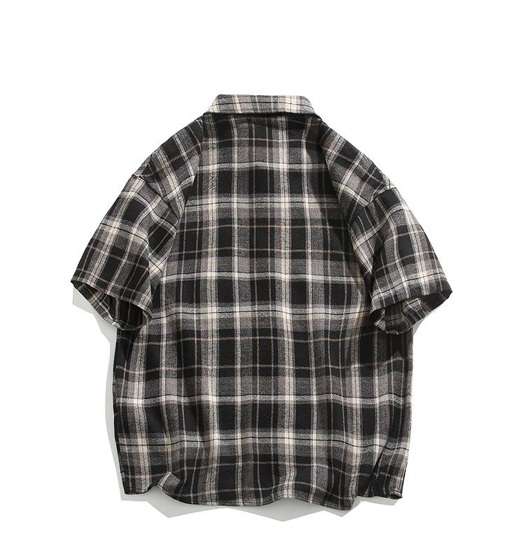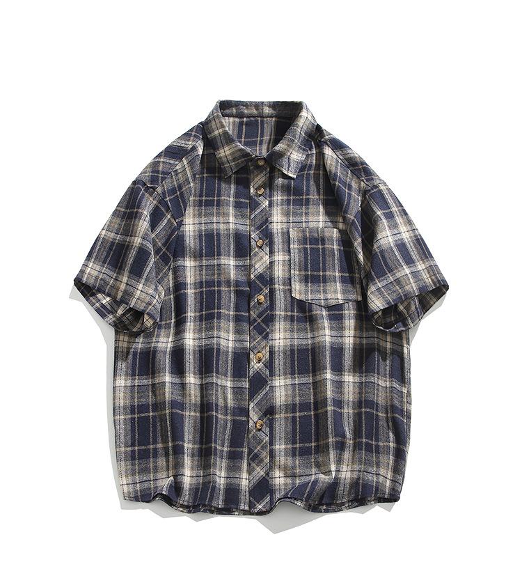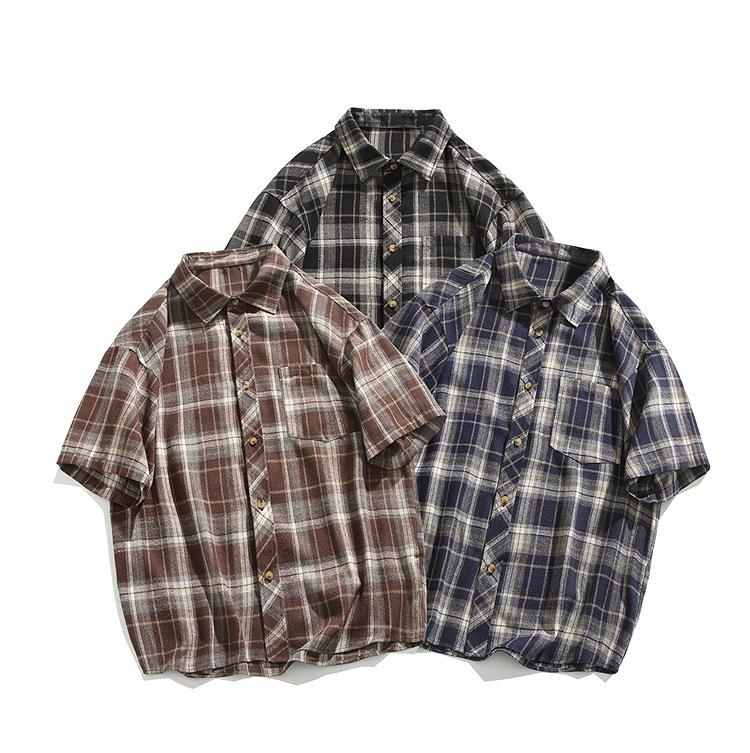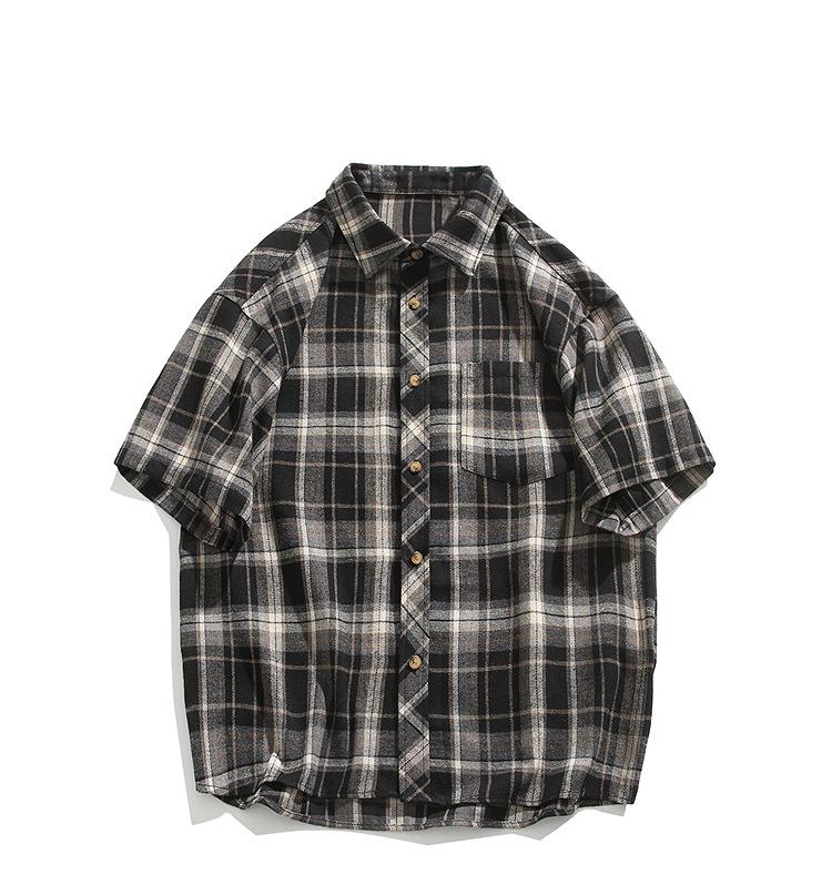 Verano 2025 Nuevo Comercio Exterior Camisa Retro de Cuadros de Talla Grande de Manga Corta para Hombre Camisa Casual Holgada con Solapa para Hombre