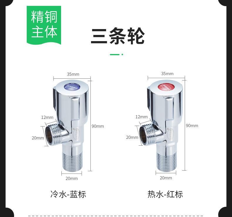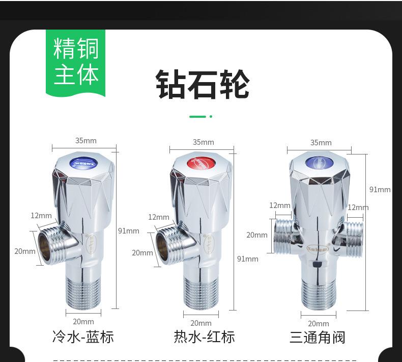 Válvula angular válvula de triángulo de cobre puro interruptor divisor de agua de tres vías agua fría y caliente uno dentro dos fuera acero inoxidable 304 válvula en forma de ocho