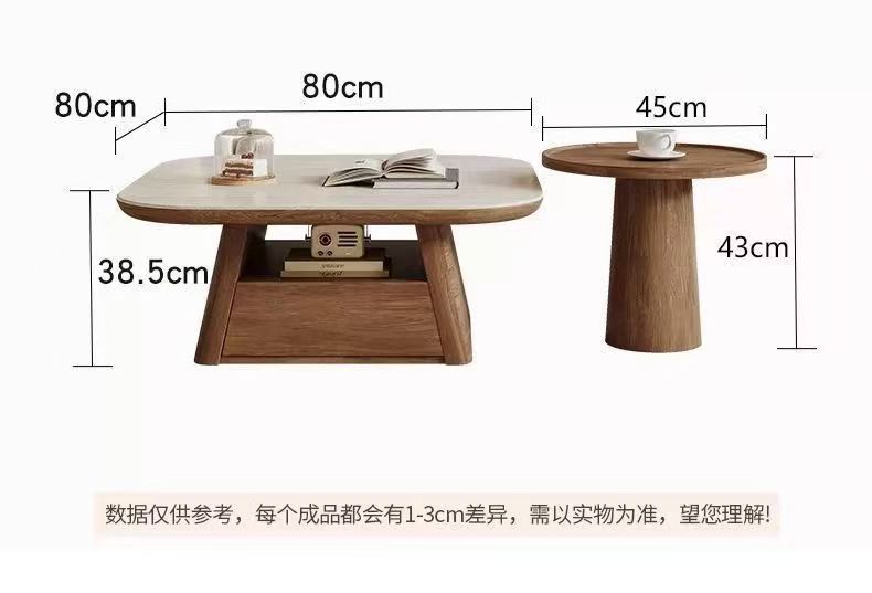 1.3m long coffee table, 1.3m long coffee table + side table, 0.8m square coffee table, 0.8m square coffee table + side table