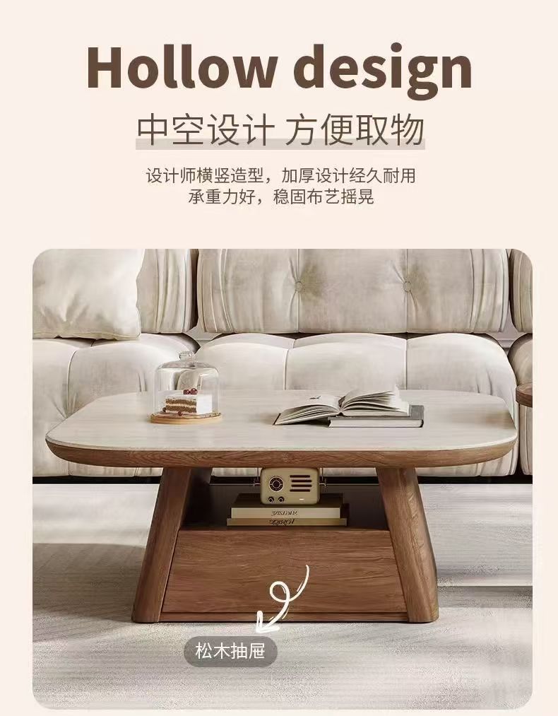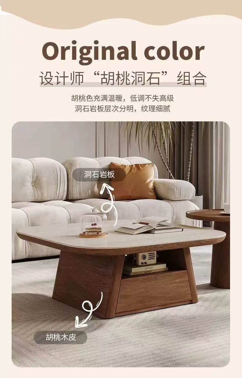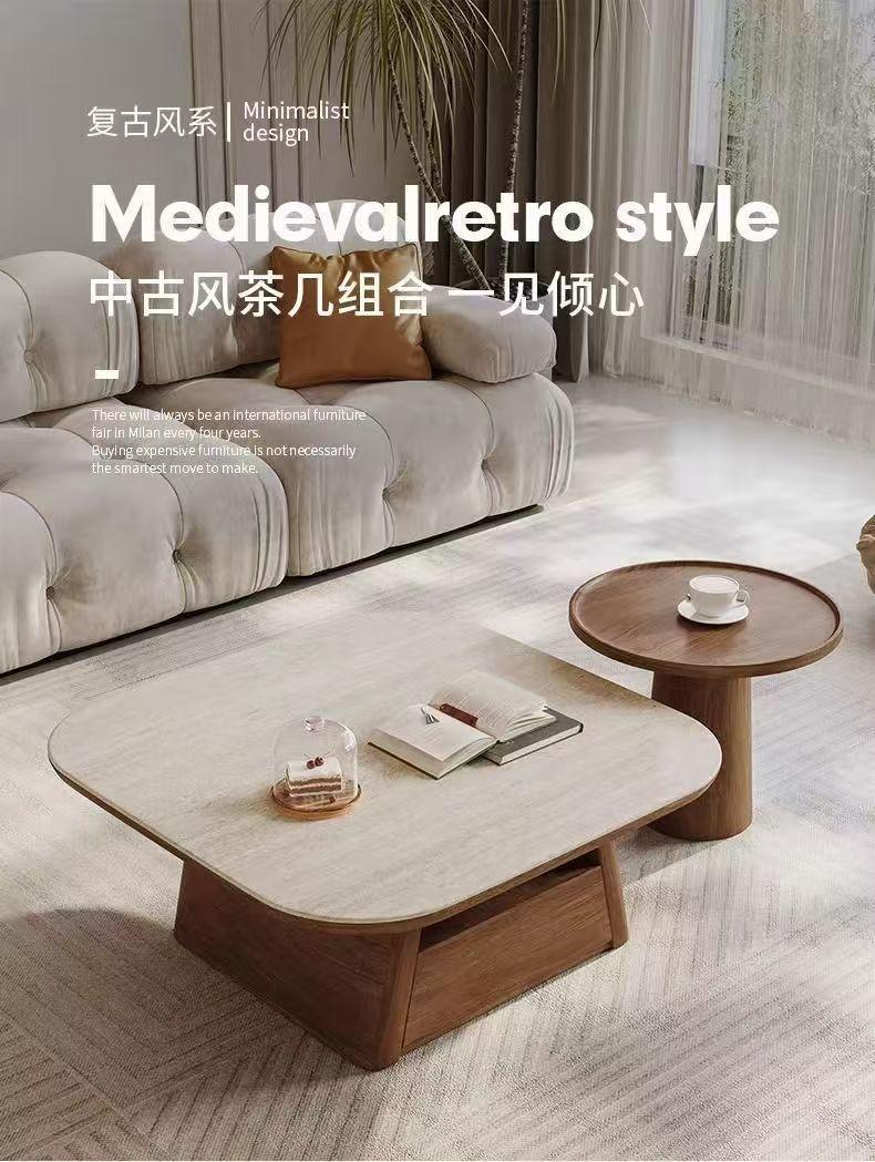 Mesa de Centro Sencilla de Lujo Ligero Moderna Sala de Estar Hogar Apartamento Pequeño Combinación Creativa Antigua de Alta Gama Retro Rectangular Nuevo Estilo