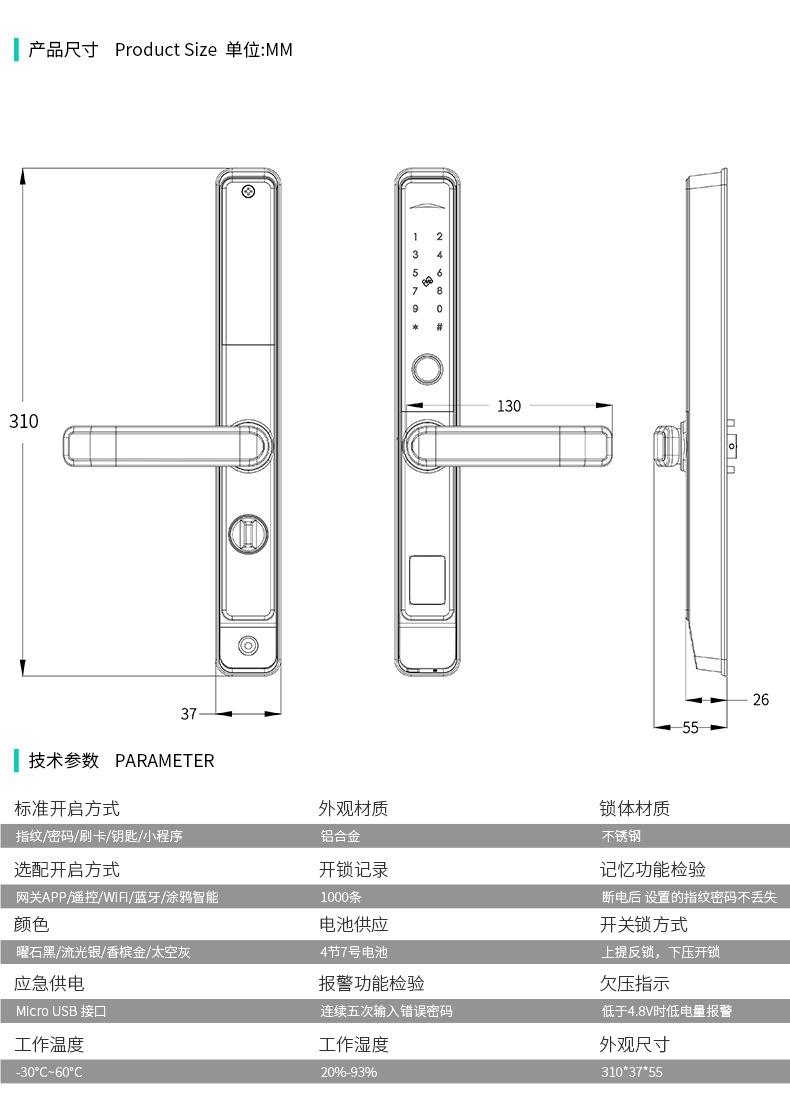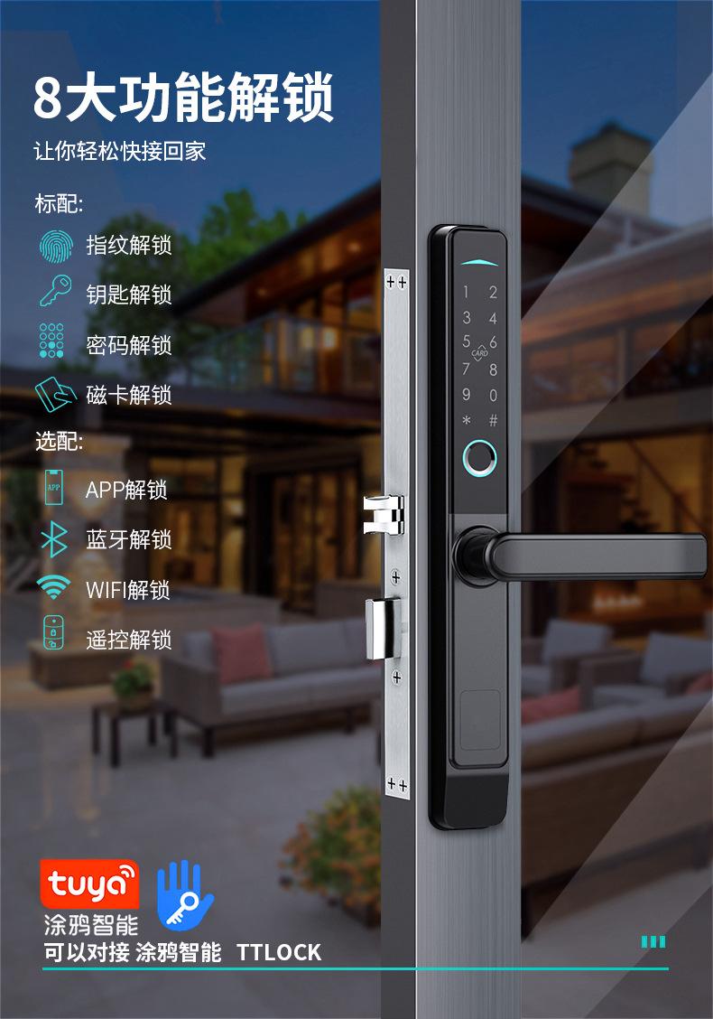 Cerradura inteligente de aluminio de puente roto de alta gama para puerta móvil, graffiti, contraseña, huella digital con control remoto, entrada, patio, doble desbloqueo