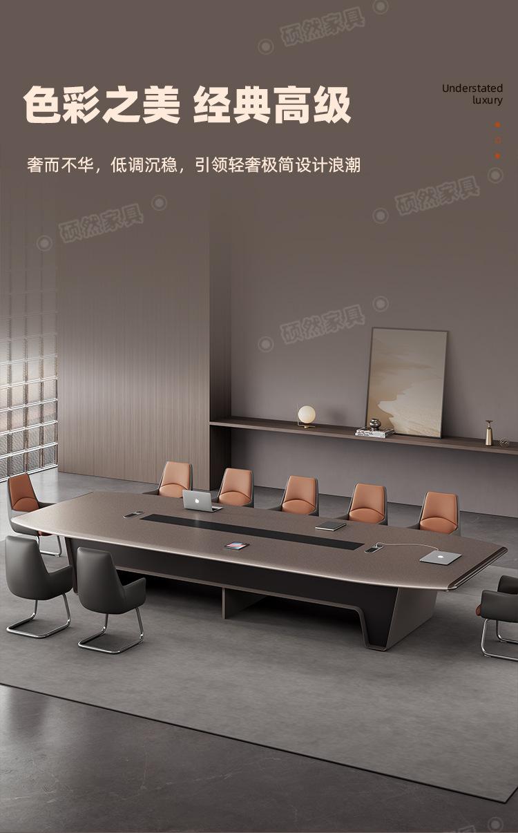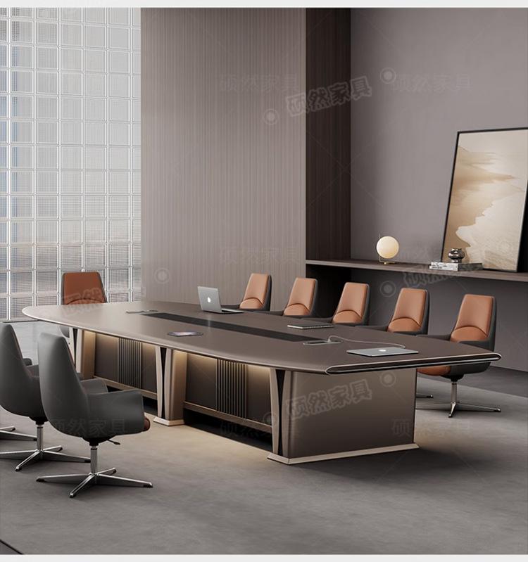Mesa de conferencias grande y mediana de alta gama, mesa larga simple y moderna de lujo ligero, mesa de recepción para negociación, combinación de mesa y sillas para sala de conferencias, oficina