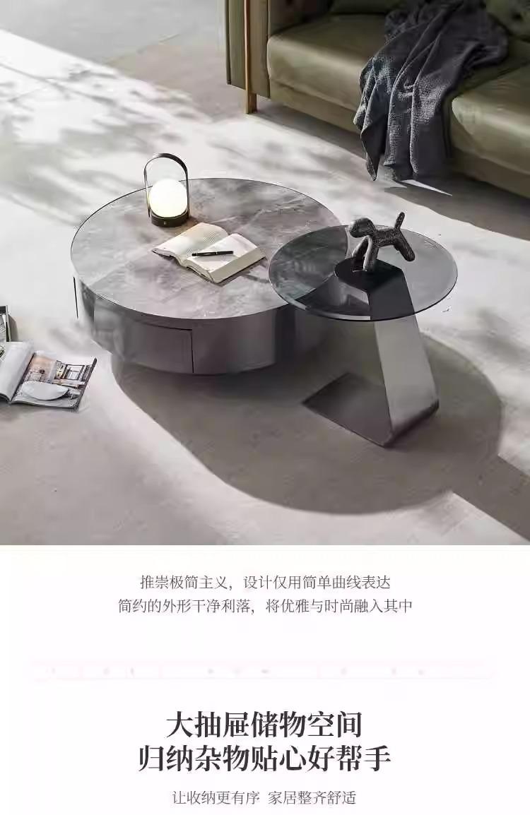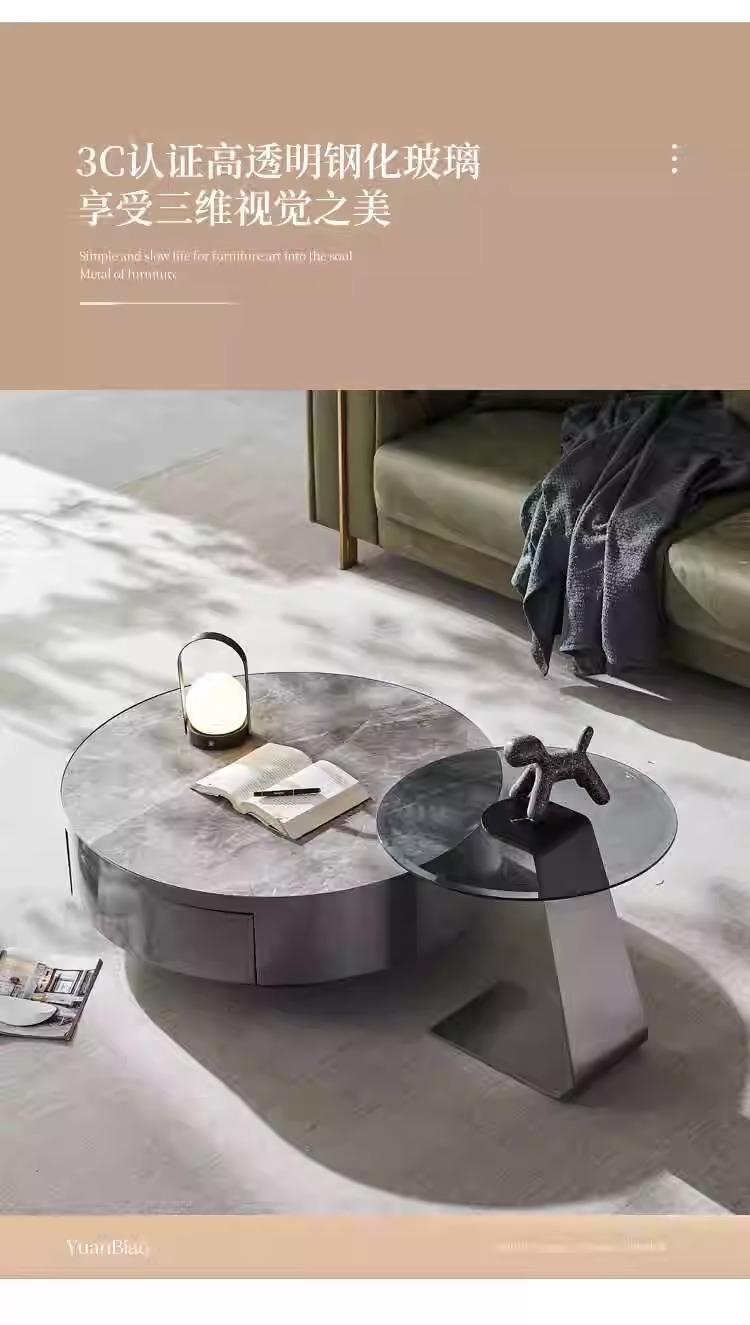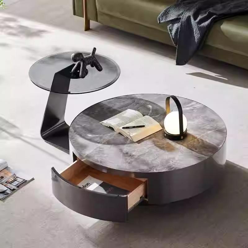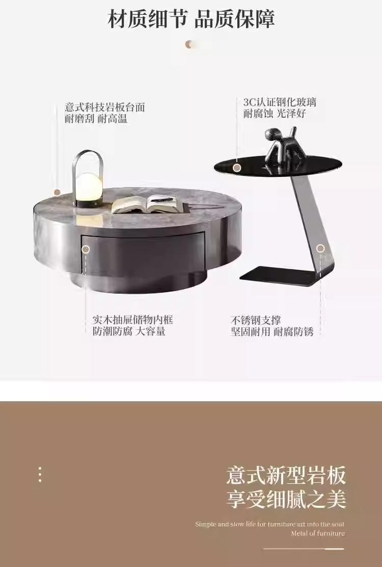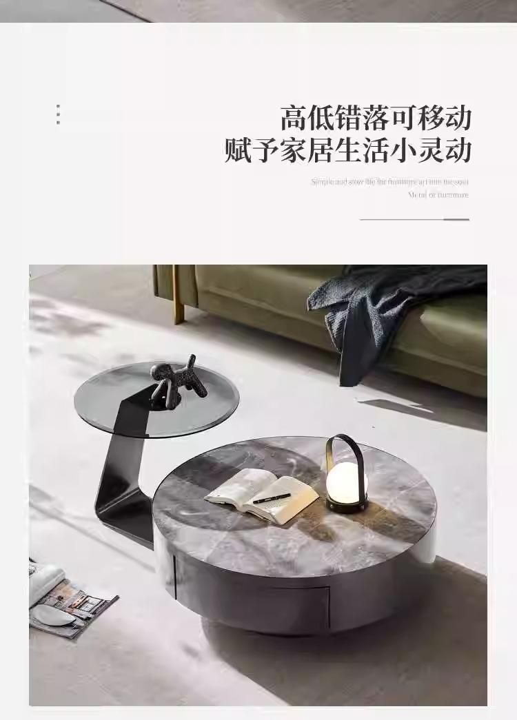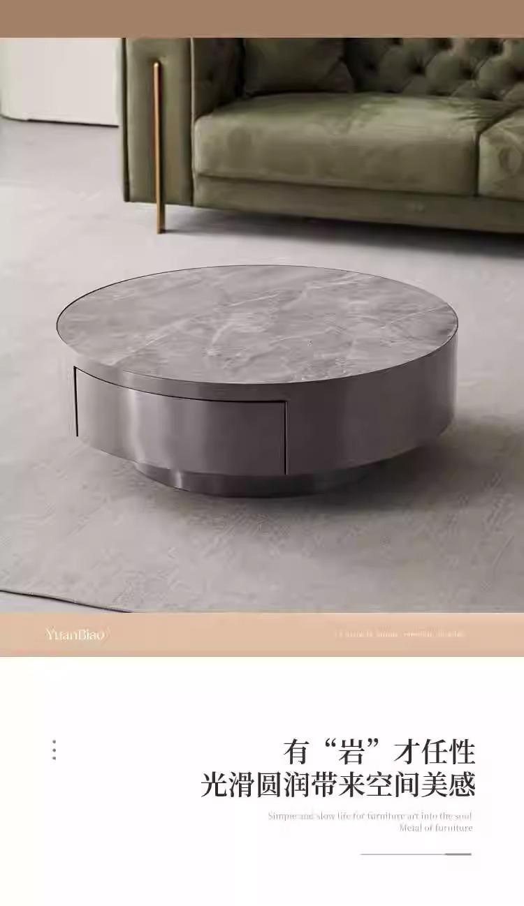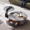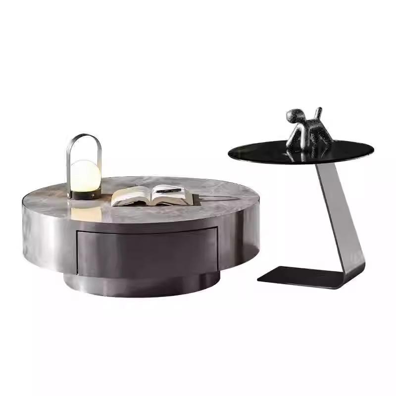 Mesa de Centro Redonda Combinada para Sala de Estar Moderna y Sencilla para Apartamento Pequeño para Hogar 2025 Nueva Mesa de Centro para Hogar con Placa de Roca de Acero Inoxidable
