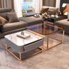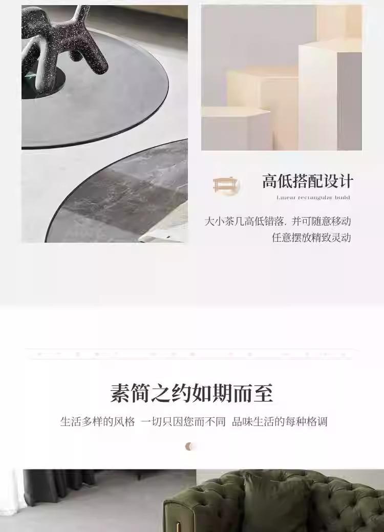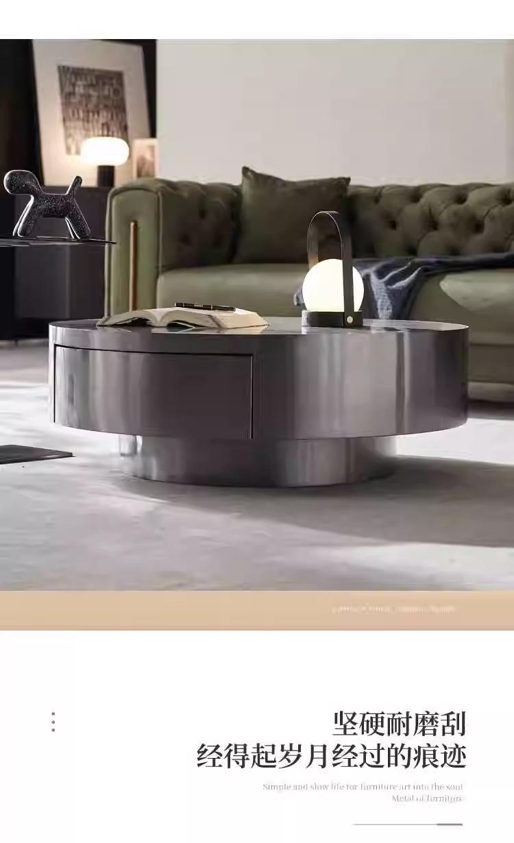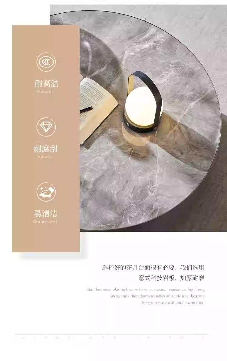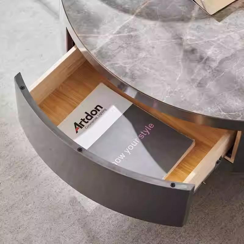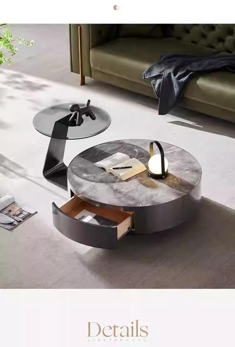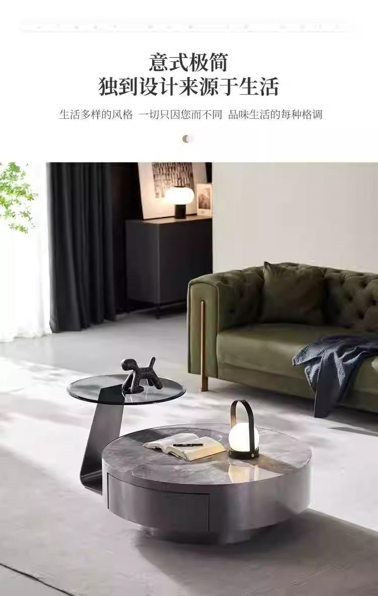 Mesa de Centro Redonda Combinada para Sala de Estar Moderna y Sencilla para Apartamento Pequeño para Hogar 2025 Nueva Mesa de Centro para Hogar con Placa de Roca de Acero Inoxidable