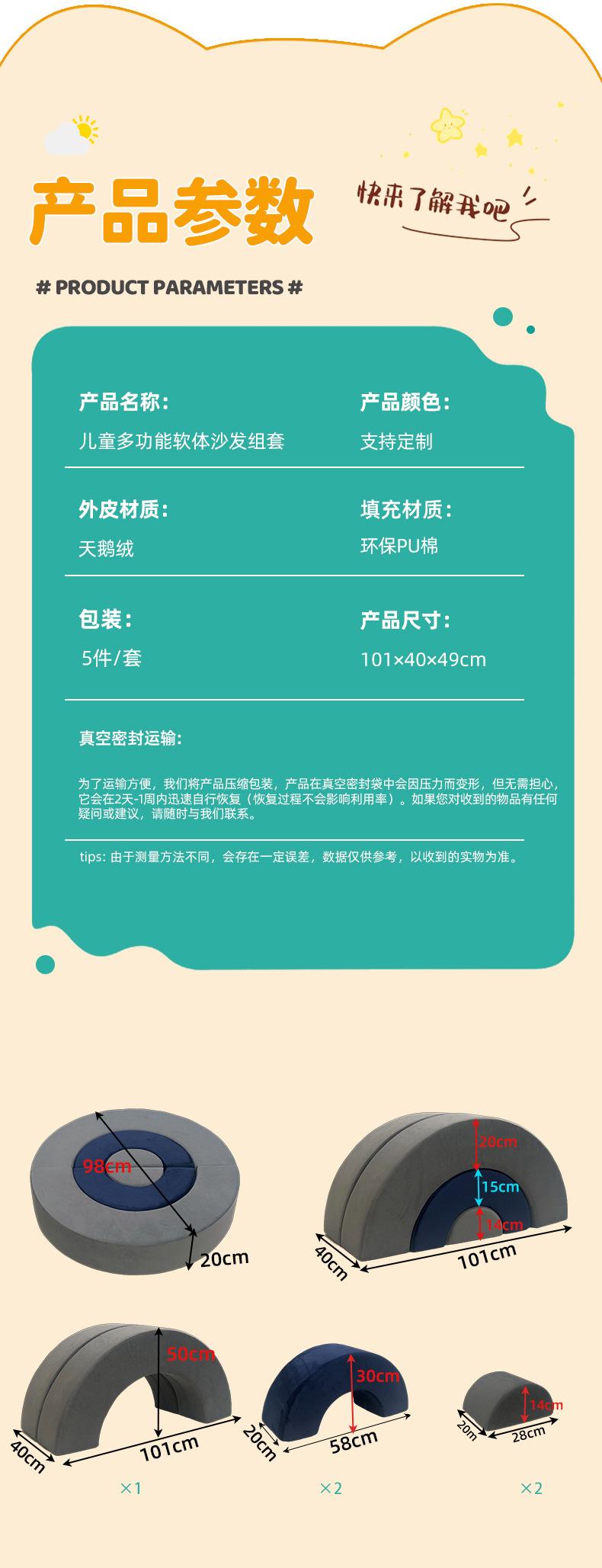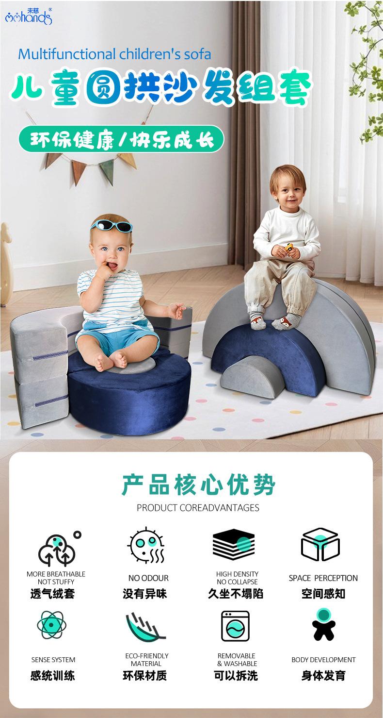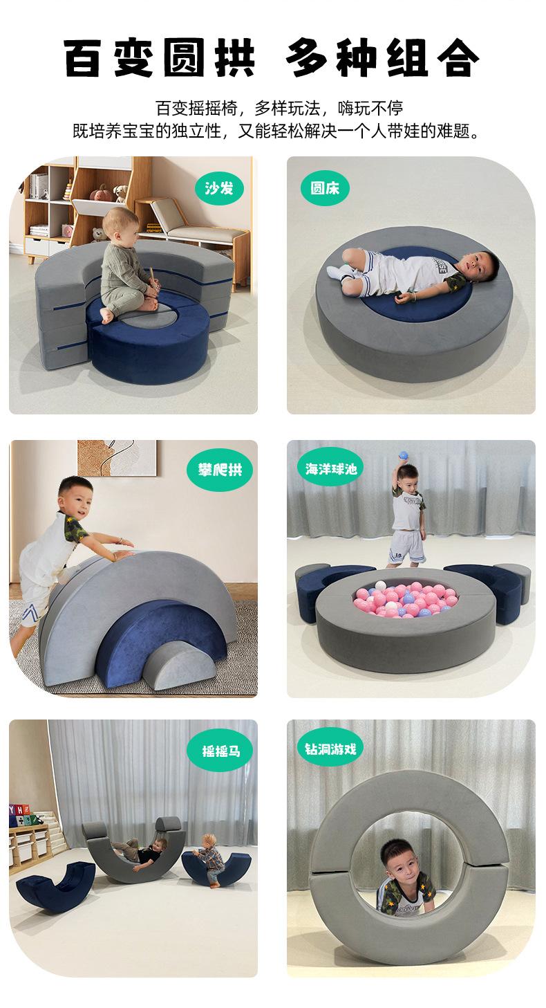 Combinación de Software de Educación Infantil Sofá Redondo para Niños con Arco Juego de Tres Piezas Combinación Suave para Escalar y Deslizar Juguete de Esponja con Bolsa Suave