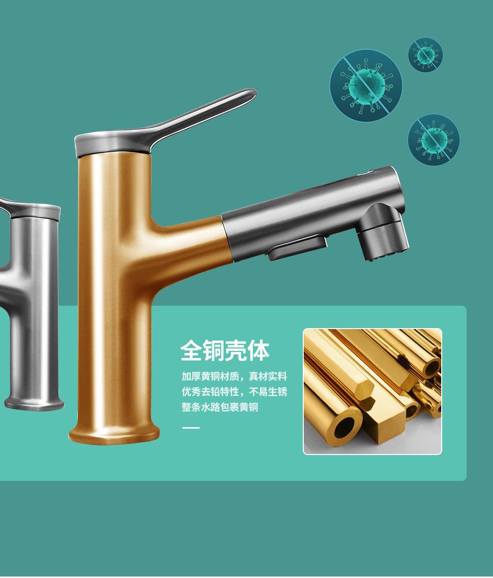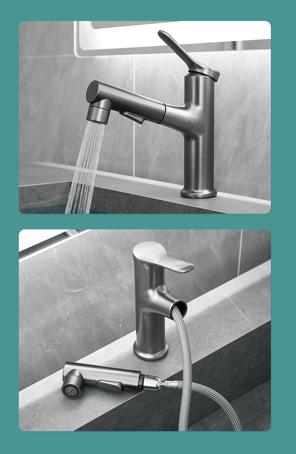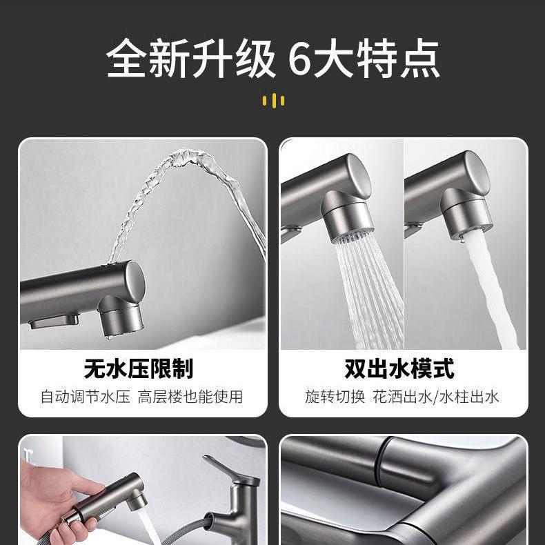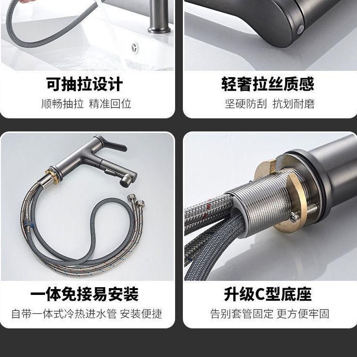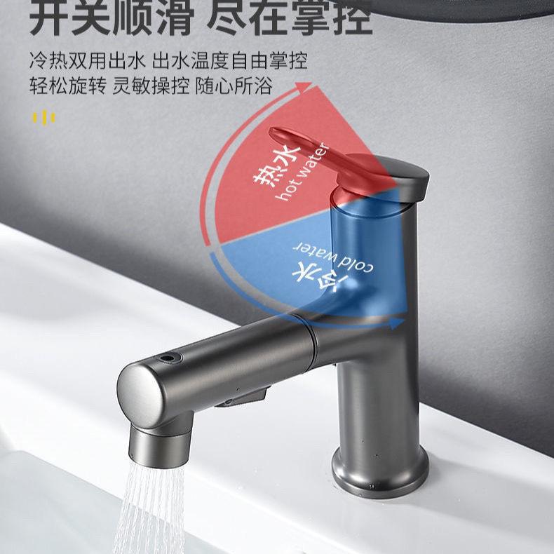 Grifo de lavabo multifunción de cobre para agua caliente y fría, grifo telescópico retráctil para lavabo de baño doméstico, grifo de agua caliente y fría