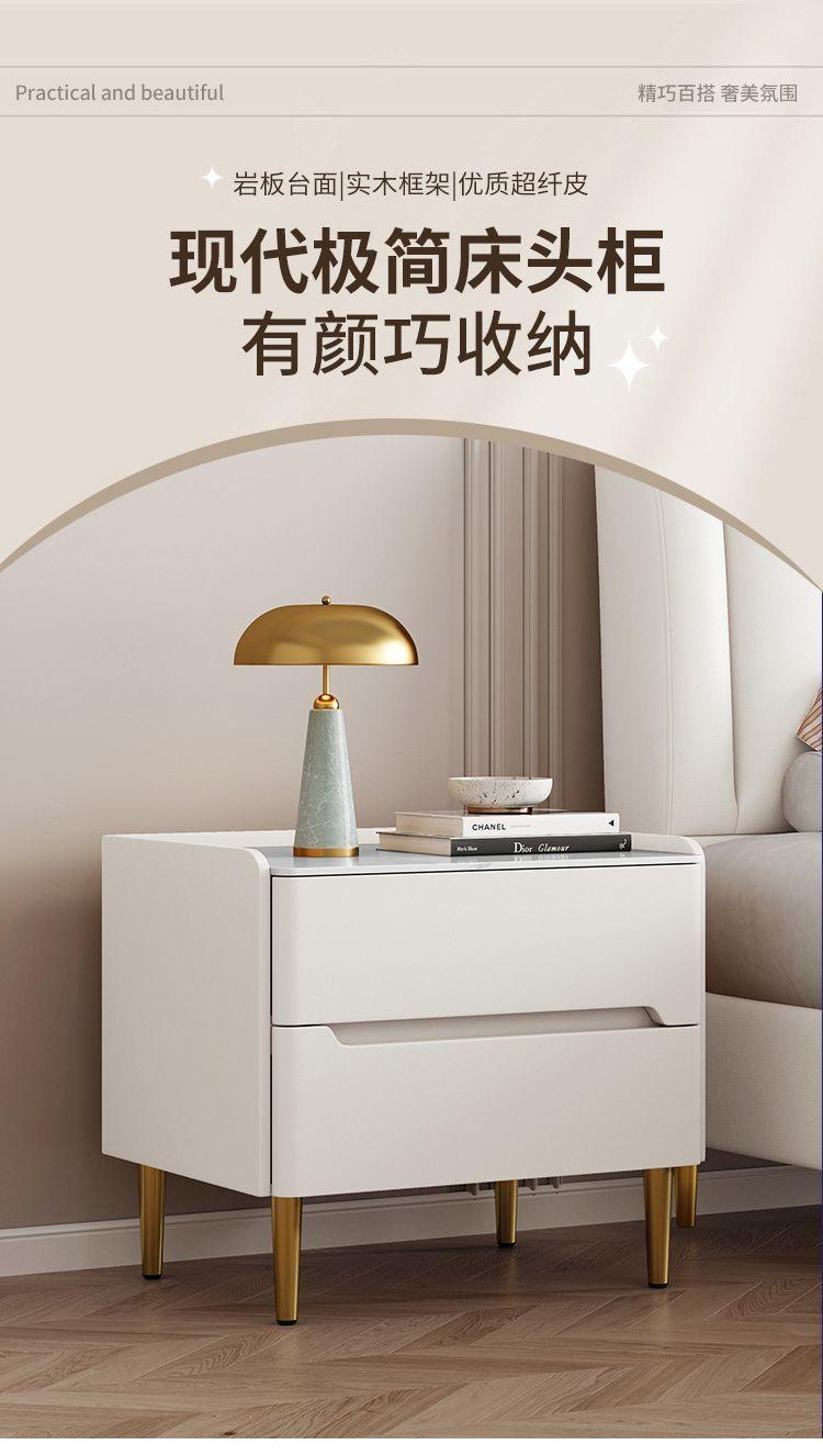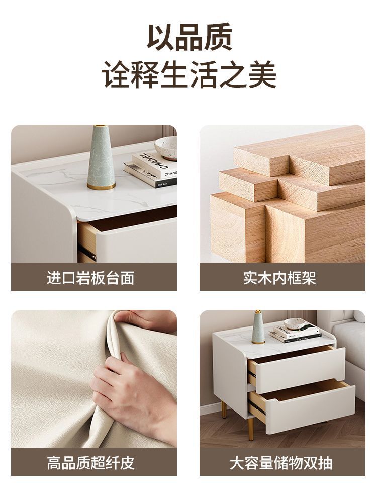Mesita de noche de madera maciza, pequeña, sencilla, moderna, para el hogar, dormitorio, ligera, de lujo, de cuero, nueva mesa de rock, con almacenamiento, mesita de noche