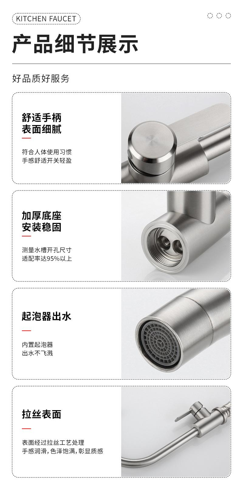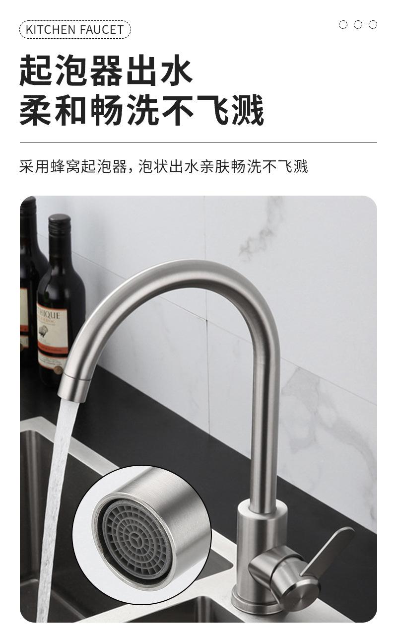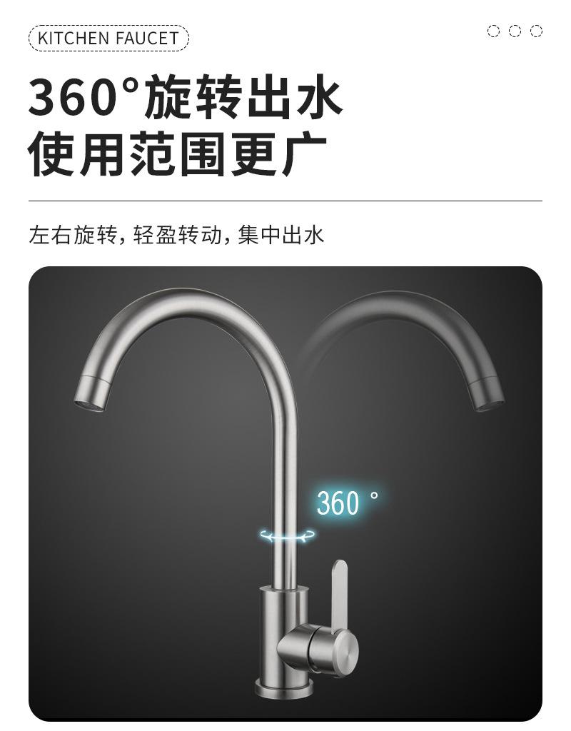 Grifo de Cocina Grueso de Acero Inoxidable 304 Transfronterizo para Fregadero Doméstico, Grifo Giratorio de Agua Fría y Caliente