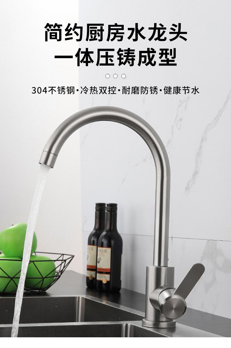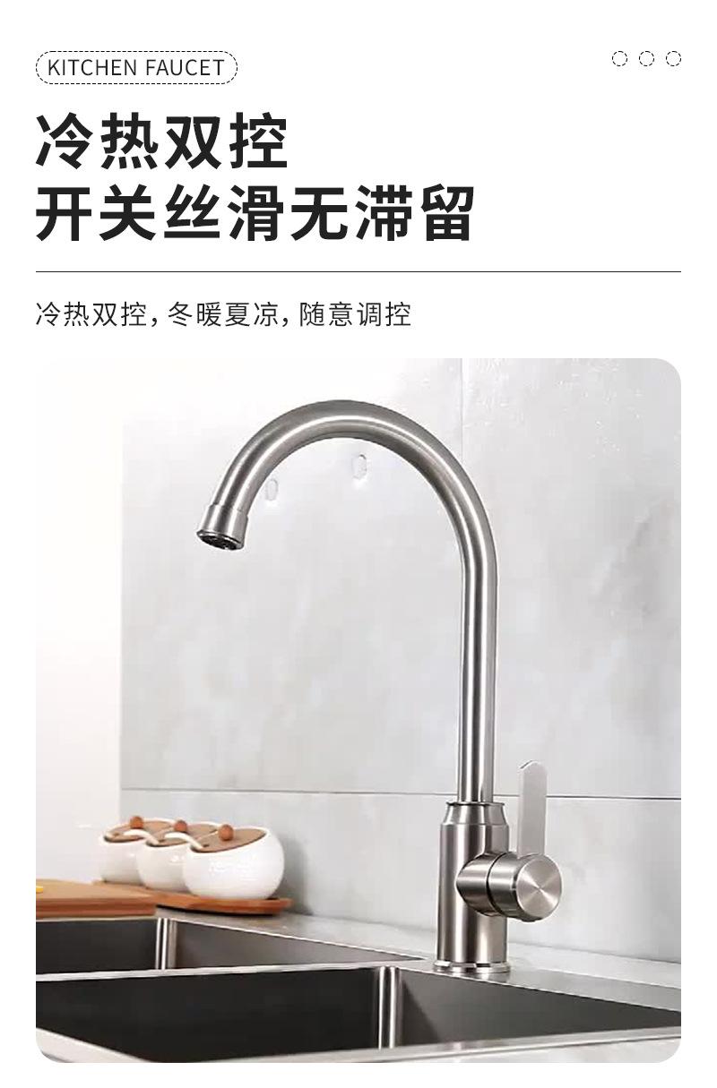Brushed hot and cold kitchen faucet (including hot and cold water inlet pipes)