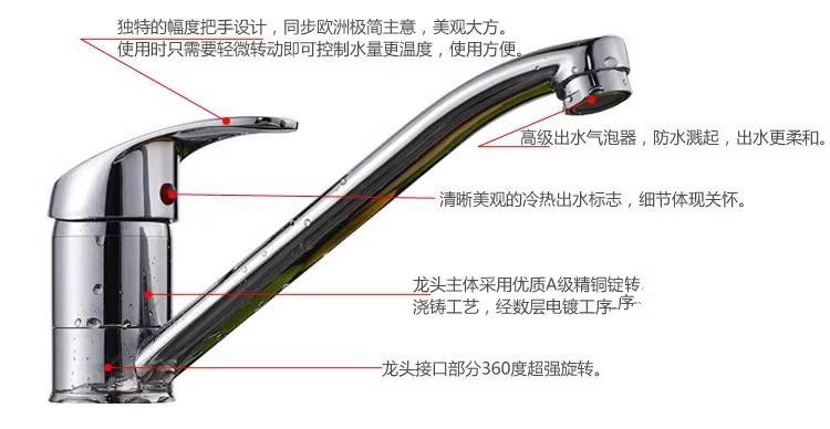 Grifo de cocina de boca larga, giratorio, universal, de un solo orificio, para agua caliente y fría, para fregadero de verduras y hogar.