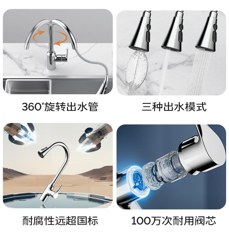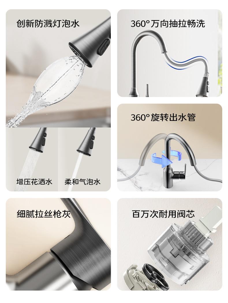 Pull-out kitchen faucet [bright silver] 360°Rotate, Pull-out kitchen faucet [gun gray] 360°Rotate