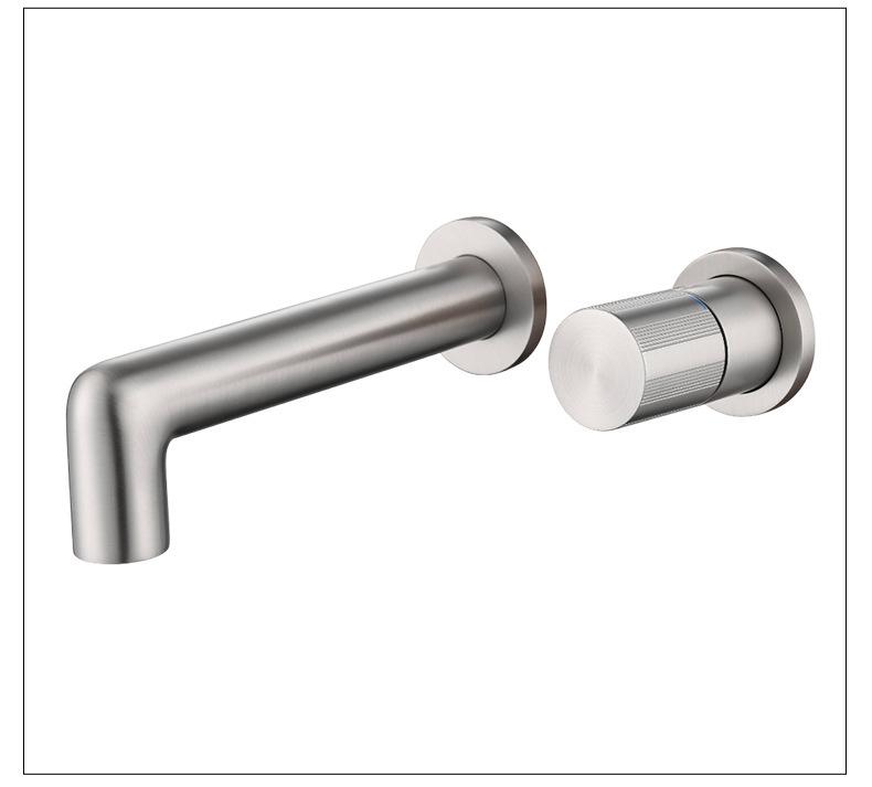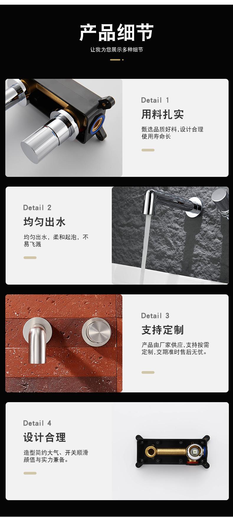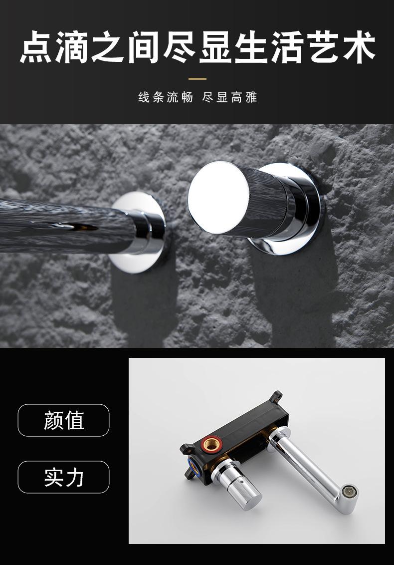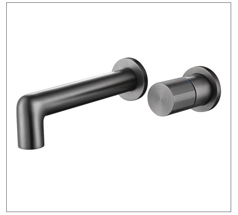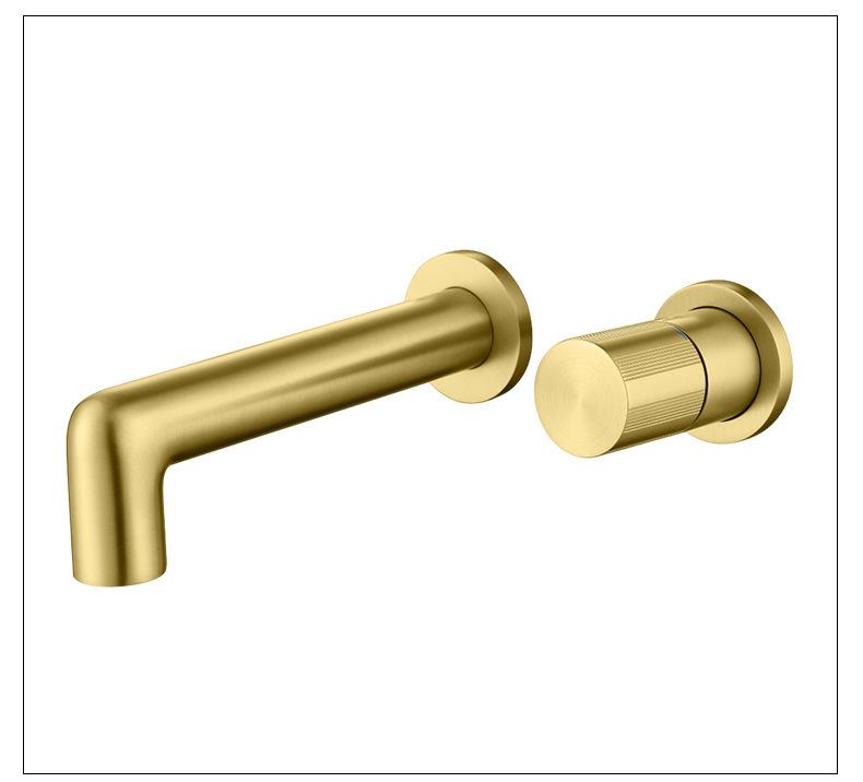 Grifo de lavabo integrado transfronterizo de agua fría y caliente, todo de cobre, minimalista, dorado cepillado, oculto, para el hogar