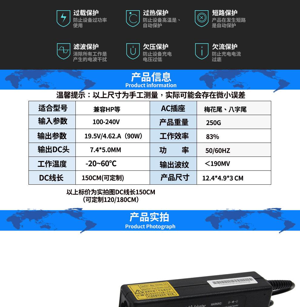 Adaptador de corriente para portátil HP 19,5 V 4,62 A, cabezal de carga de 90 W, cargador 7450