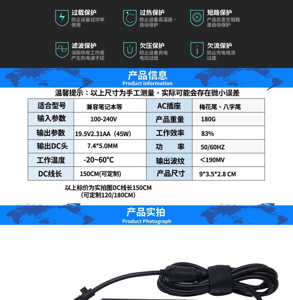 Adaptador de corriente para portátil HP H aplicable 19,5 V 2,31 ADC 7,4 x 5,0 mm cargador 45 W