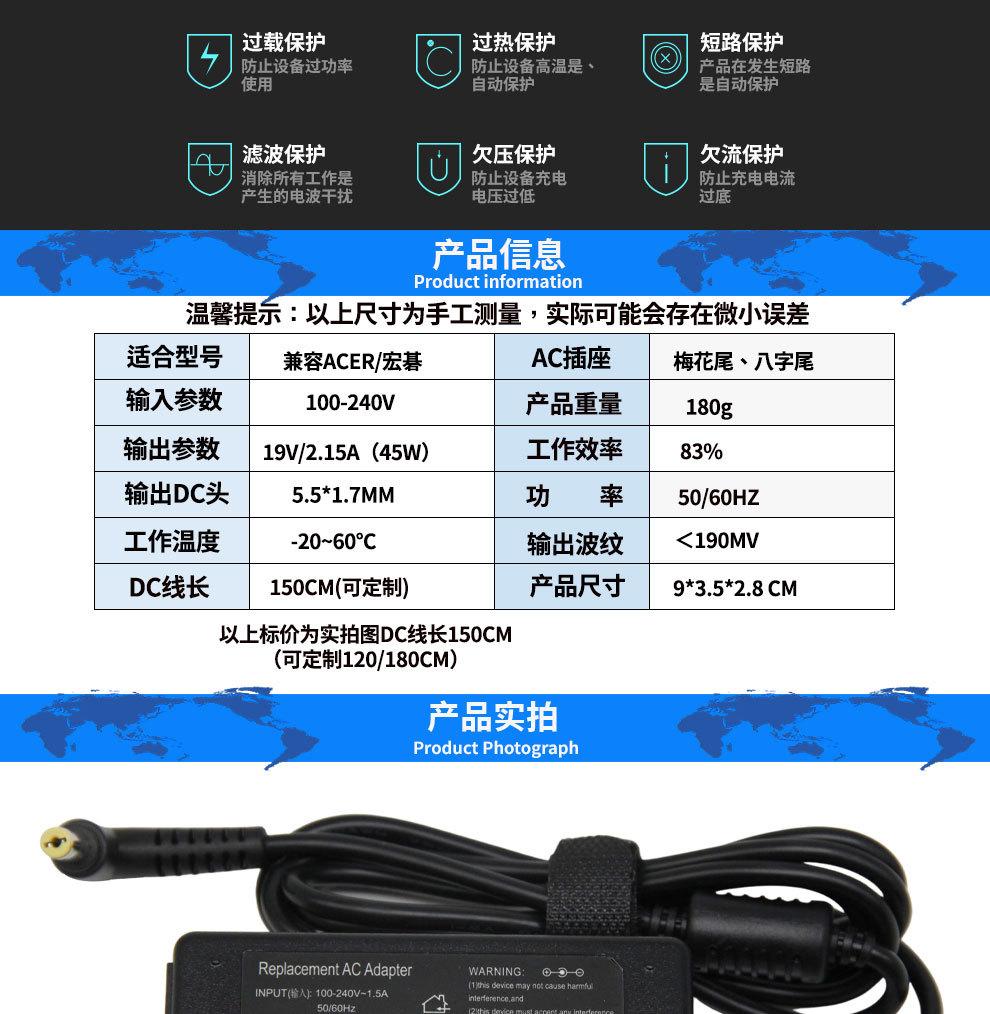 Venta directa de fábrica aplicable al adaptador de corriente para computadora portátil ACER de 40 W, cargador de 19 V 2,15 A
