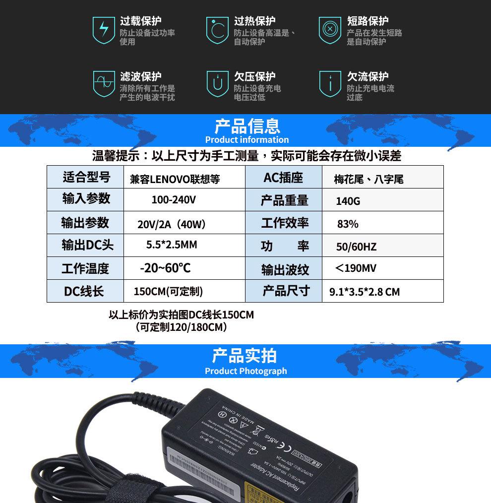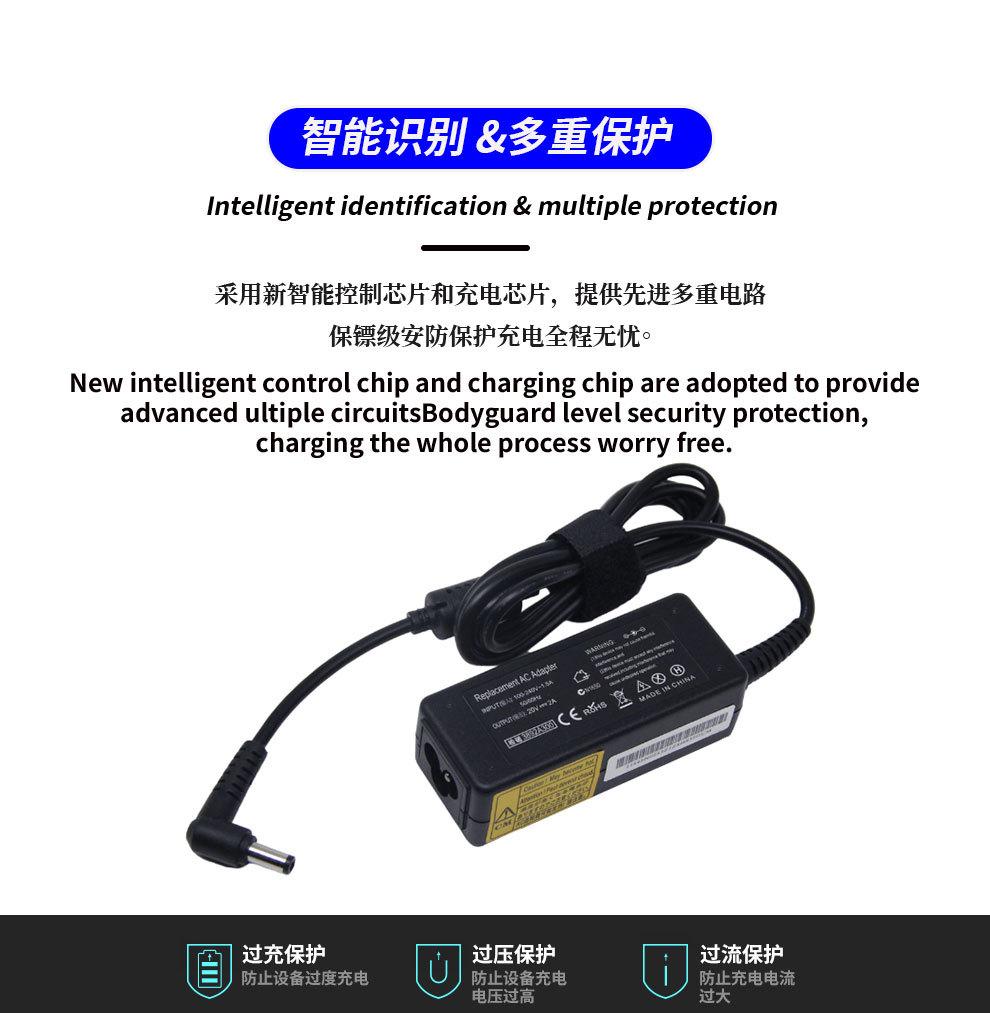 Aplicable al adaptador de corriente para portátil Lenovo 20 V 2 A 5,5 x 2,5, cargador de corriente modelo S10-2