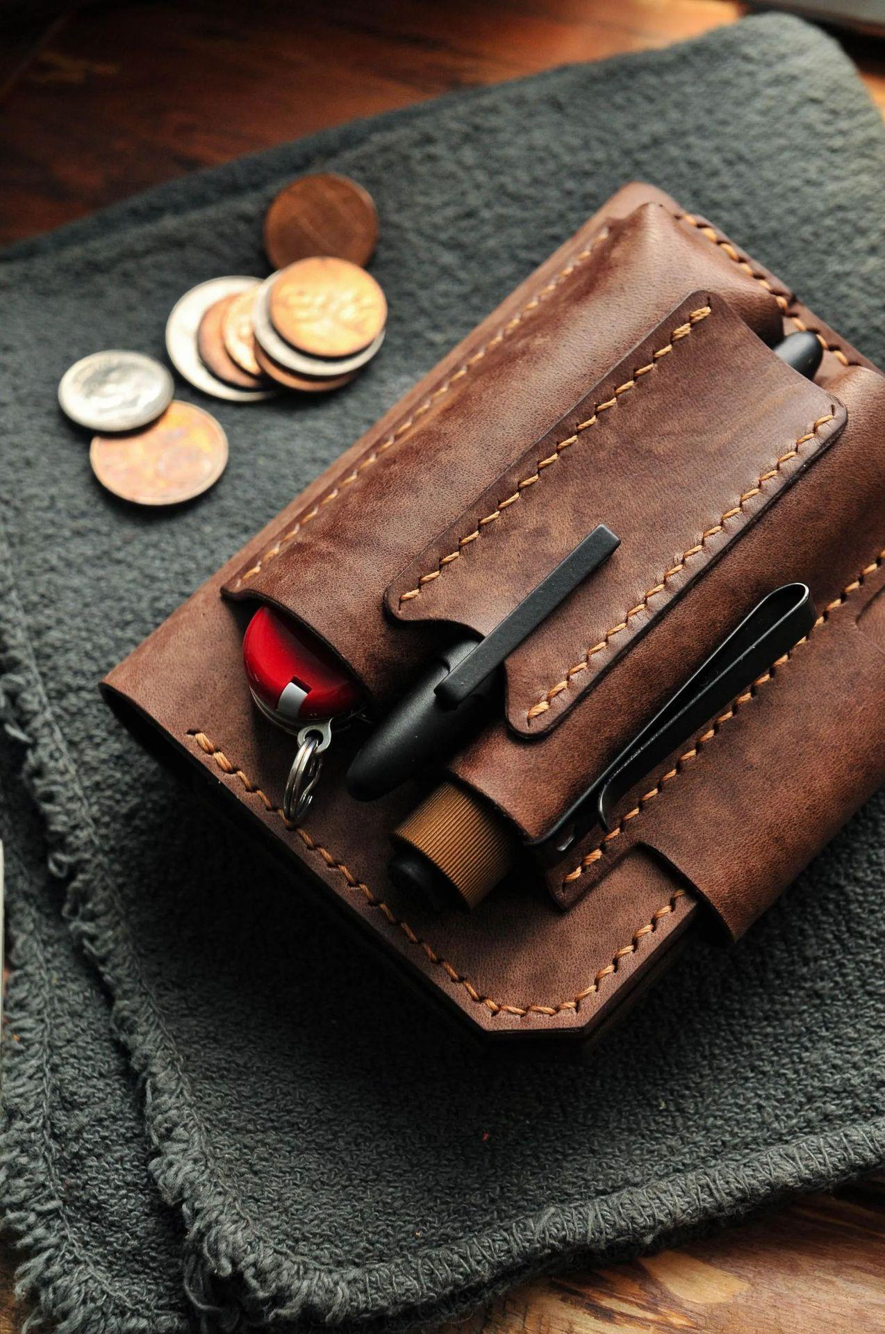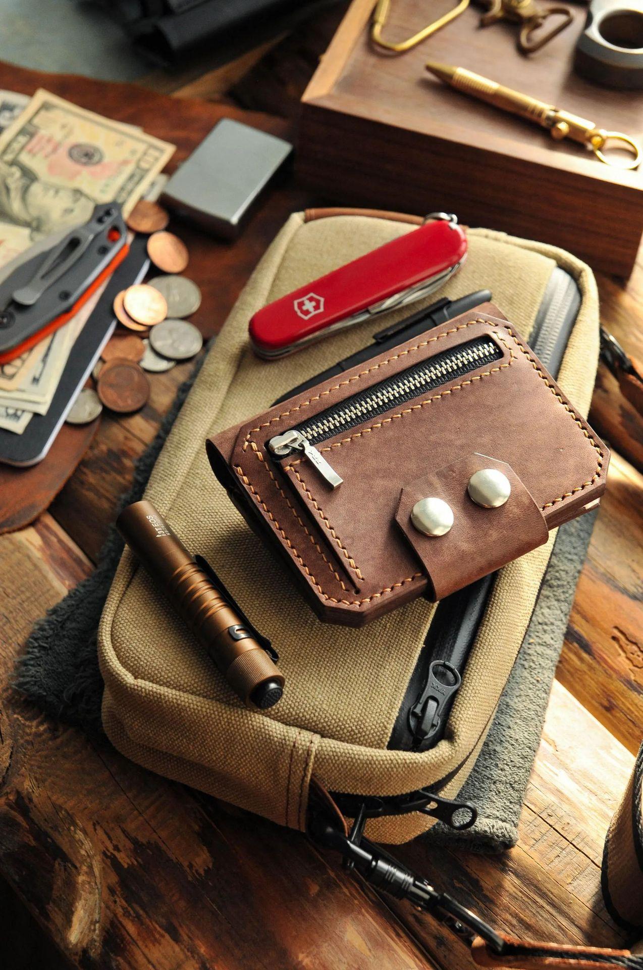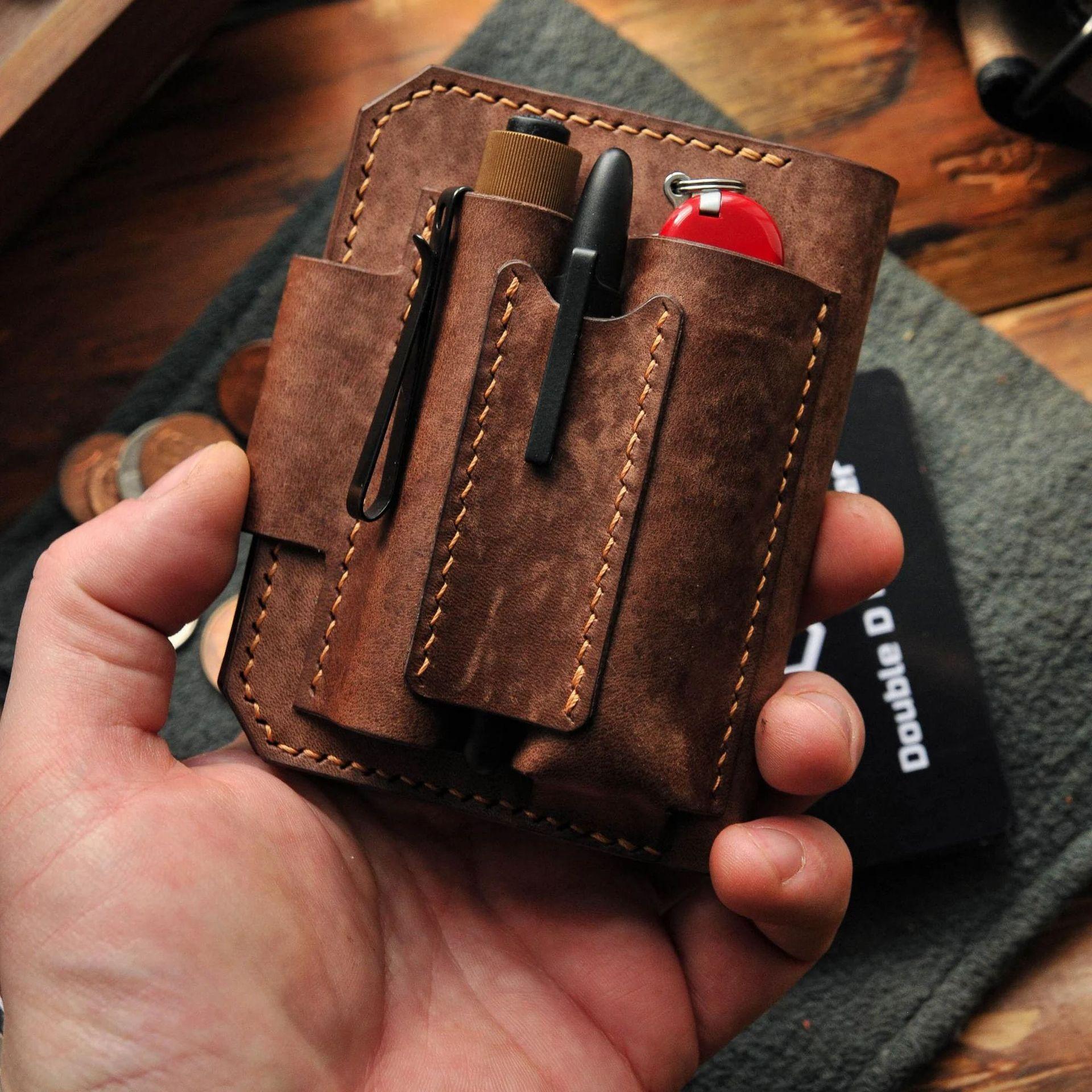 Kit de Herramientas Tácticas de Cuero Retro Transfronterizo Multifunción con Cremallera Monedero EDC para Exterior Funda para Navaja Plegable