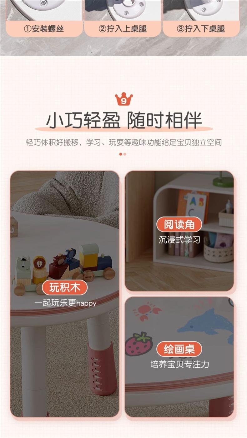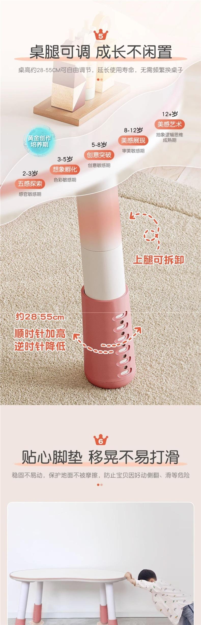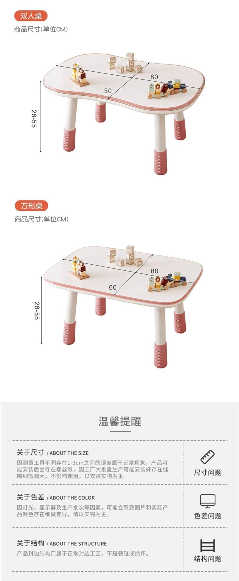 【small square table】pink (upgraded height-adjustable legs with 3d silicone edge protection)