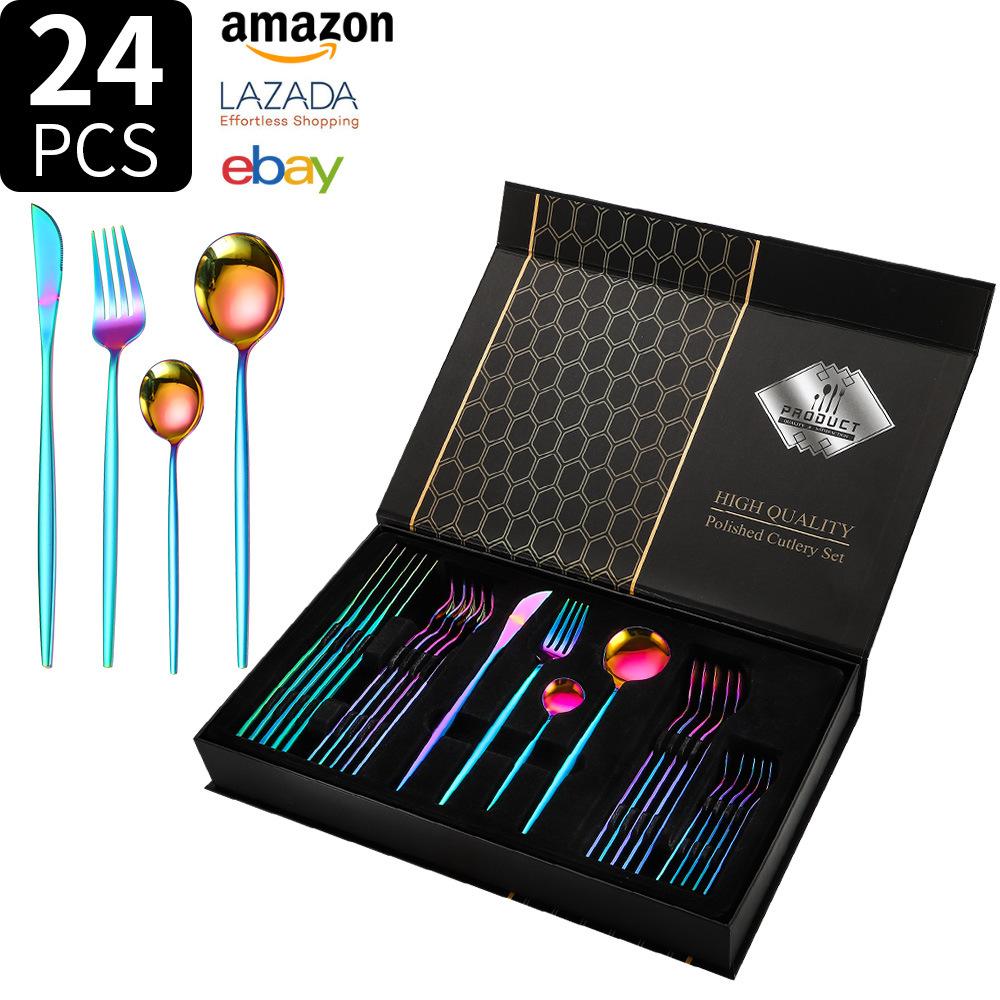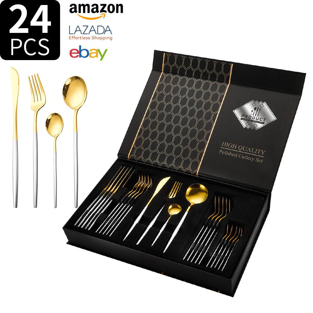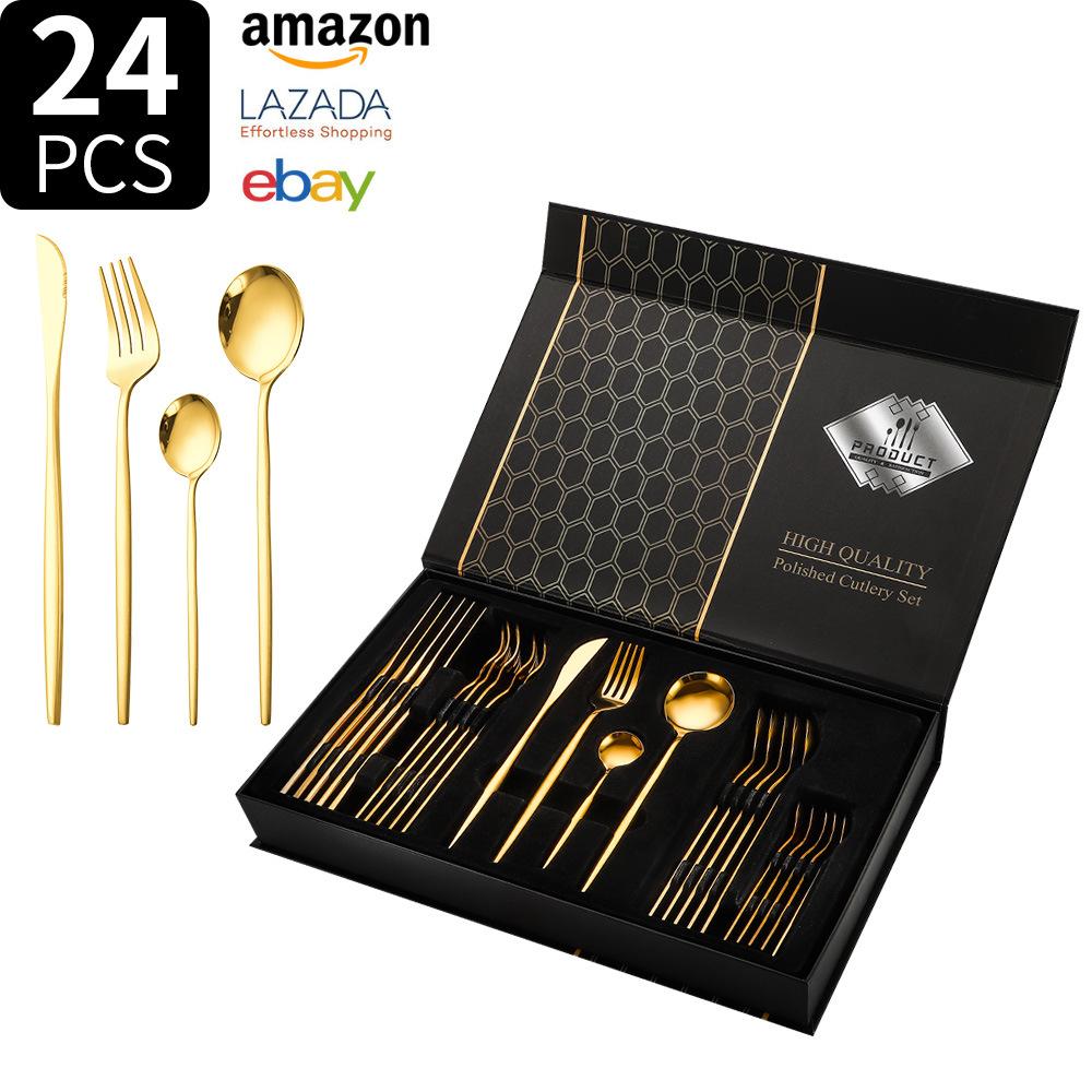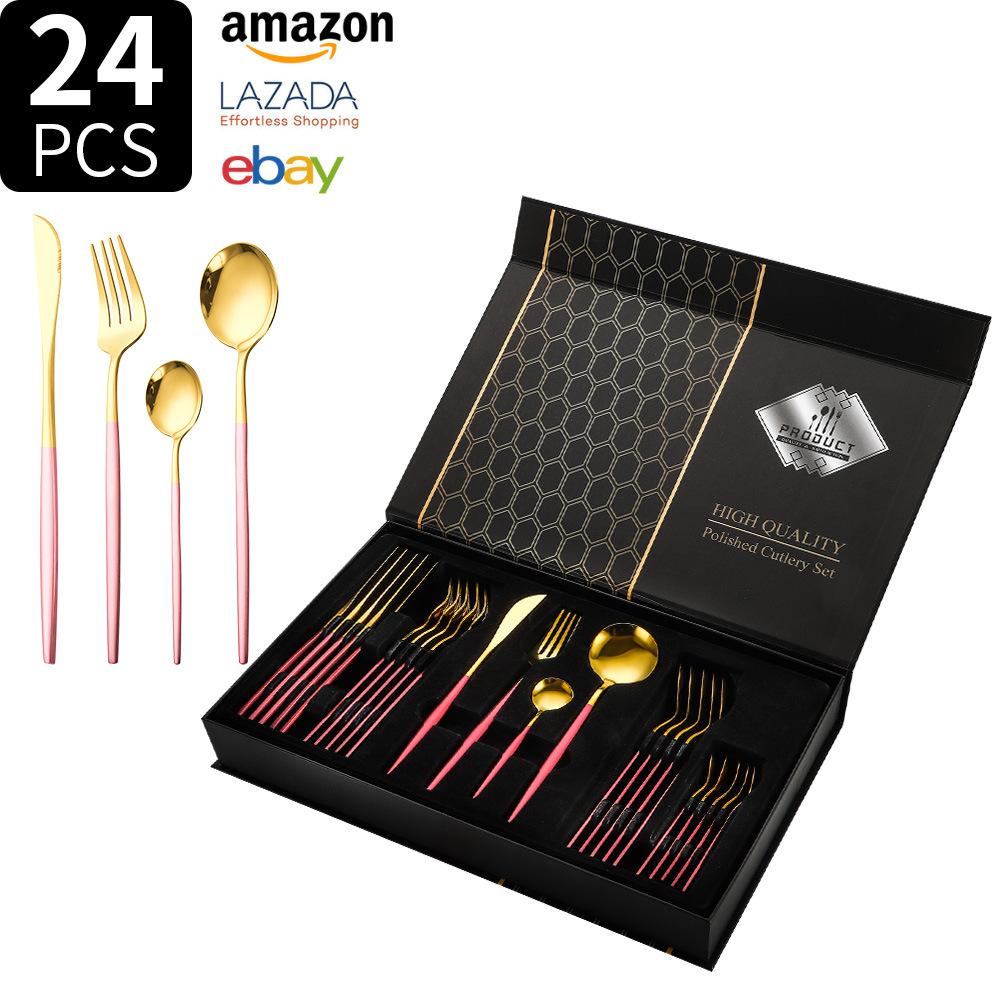Juego de Vajilla de Acero Inoxidable Portugués de 24 Piezas para el Hogar Cuchillo para Bistec, Tenedor y Cuchara Juego de Caja de Regalo para Vajilla Se Puede Personalizar