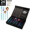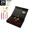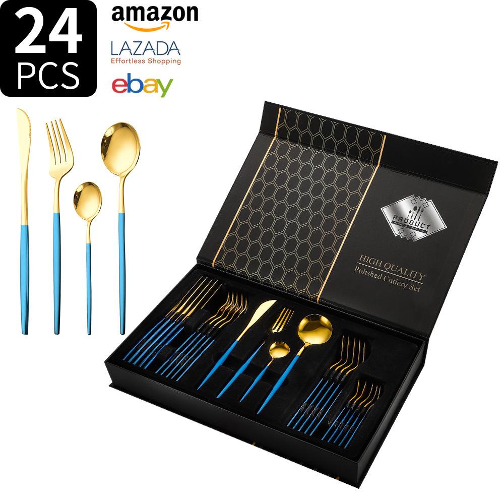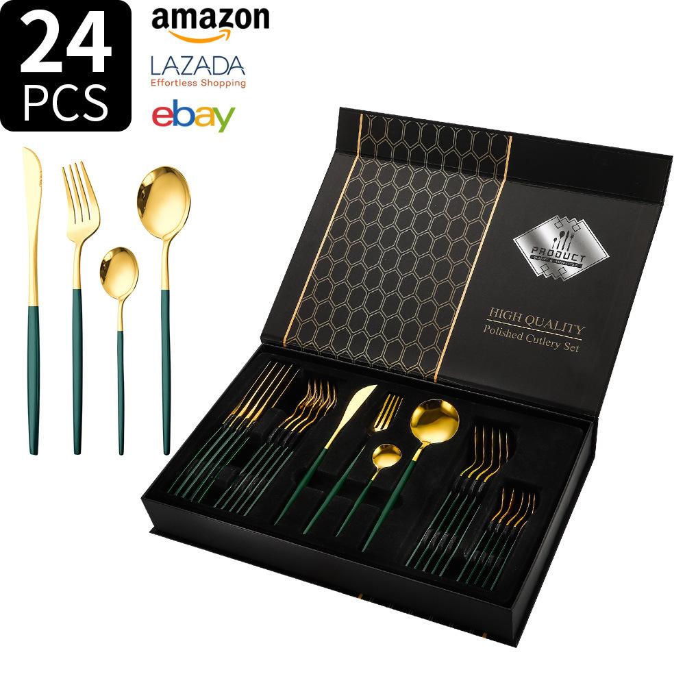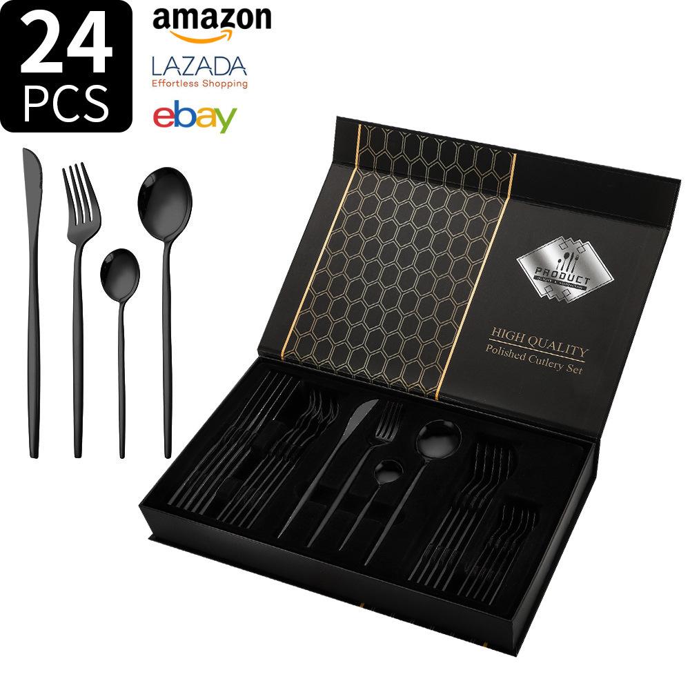 Juego de Vajilla de Acero Inoxidable Portugués de 24 Piezas para el Hogar Cuchillo para Bistec, Tenedor y Cuchara Juego de Caja de Regalo para Vajilla Se Puede Personalizar