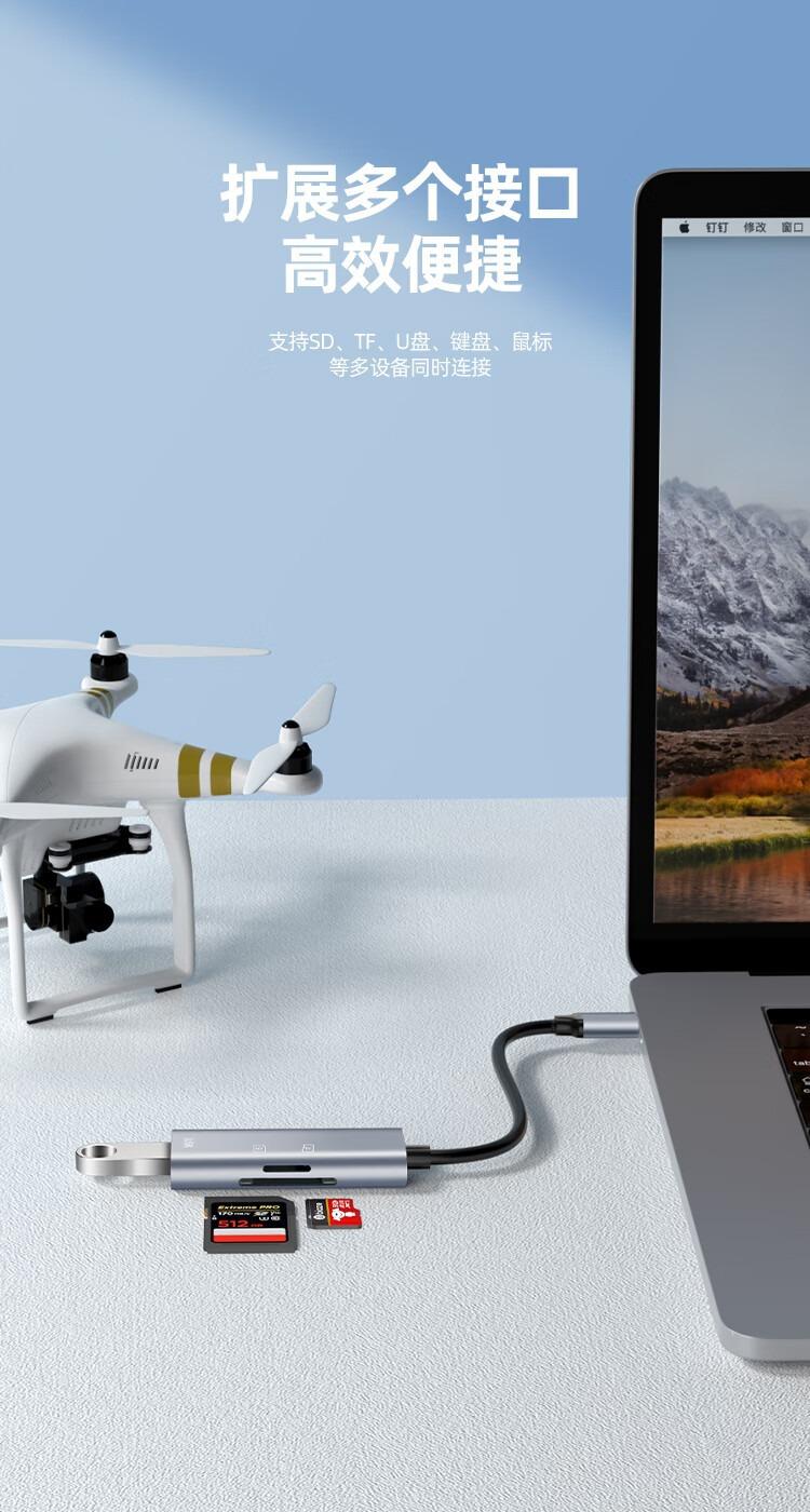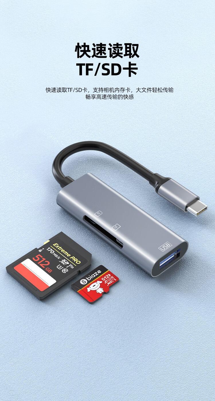 Lector de tarjetas Biaz Tipo C 2.0 de alta velocidad SD/TF multifunción uno en uno para computadora teléfono móvil OTG