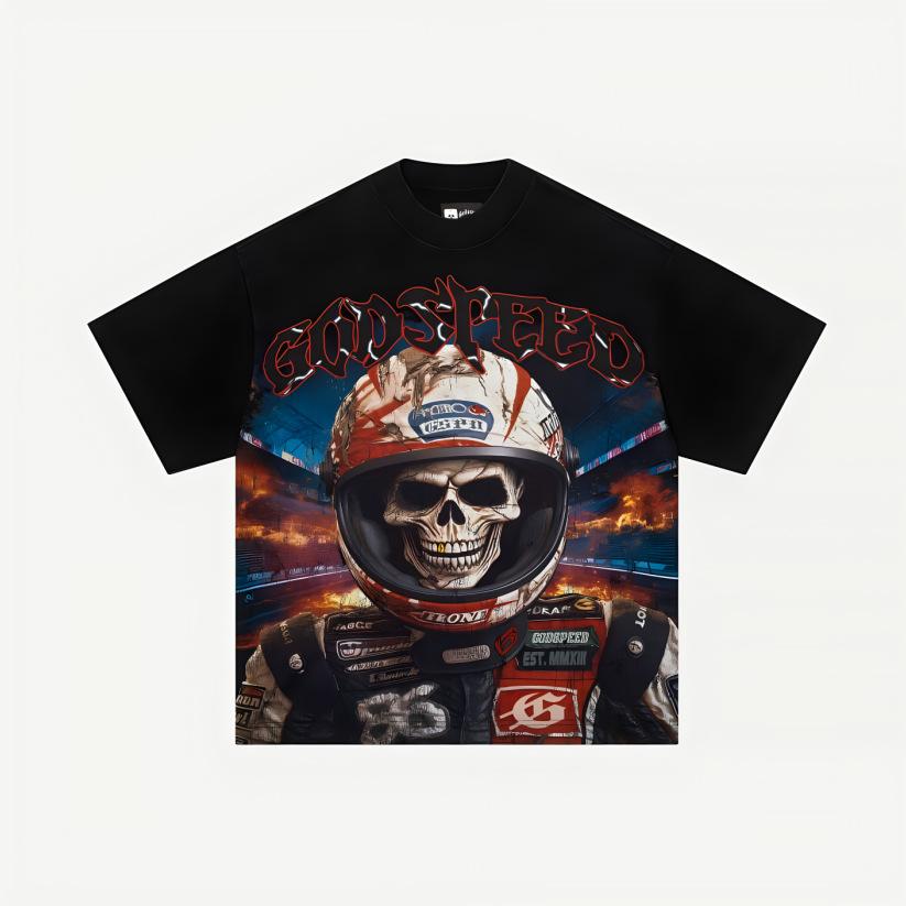 Nuevo Trendy Godspeed Edición Limitada Calavera Rock Nueva York Lavado Vintage Cuello Redondo Manga Corta