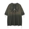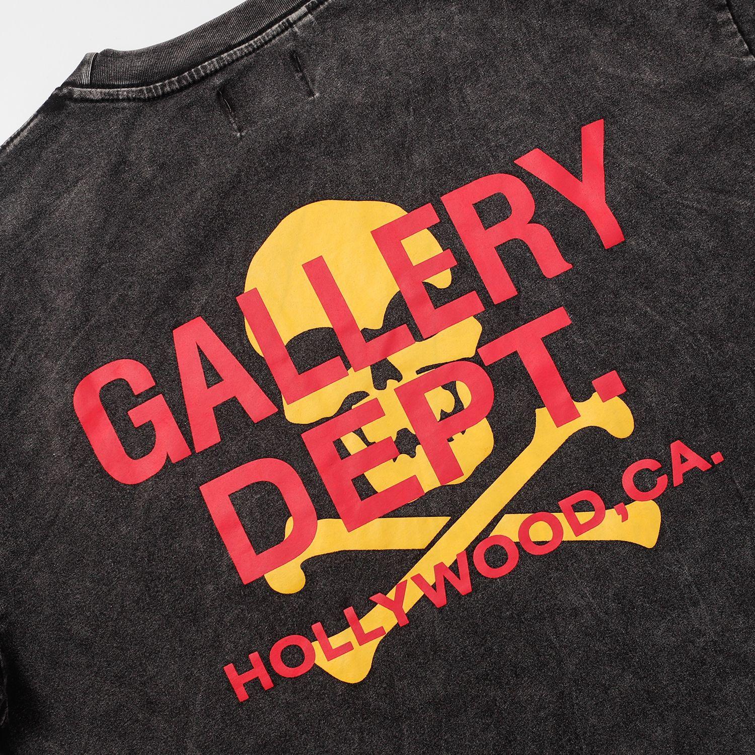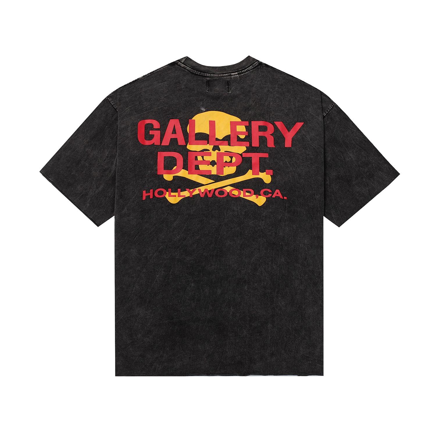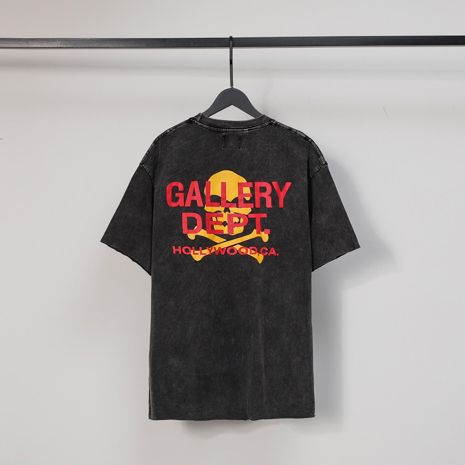 GALLERY DEPT Lavado Agua Estampado Calavera Vieja Hip-Hop Camiseta Casual de Manga Corta con Cuello Redondo para Hombre y Mujer Trendy