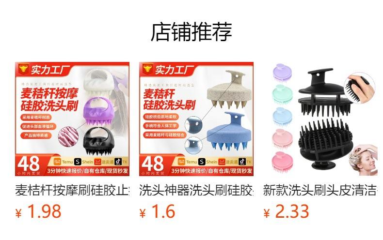 Cepillo de champú de paja de trigo, cepillo de champú de masaje de silicona, artefacto de masaje de champú redondo, peine para limpiar el cabello en stock al por mayor
