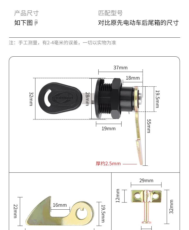 Cerradura de Maletero para Vehículo Eléctrico Accesorios Universales Batería Cerradura de Gancho para Maletero de Motocicleta Caja de Herramientas Cerradura de Núcleo Hebilla de Fijación