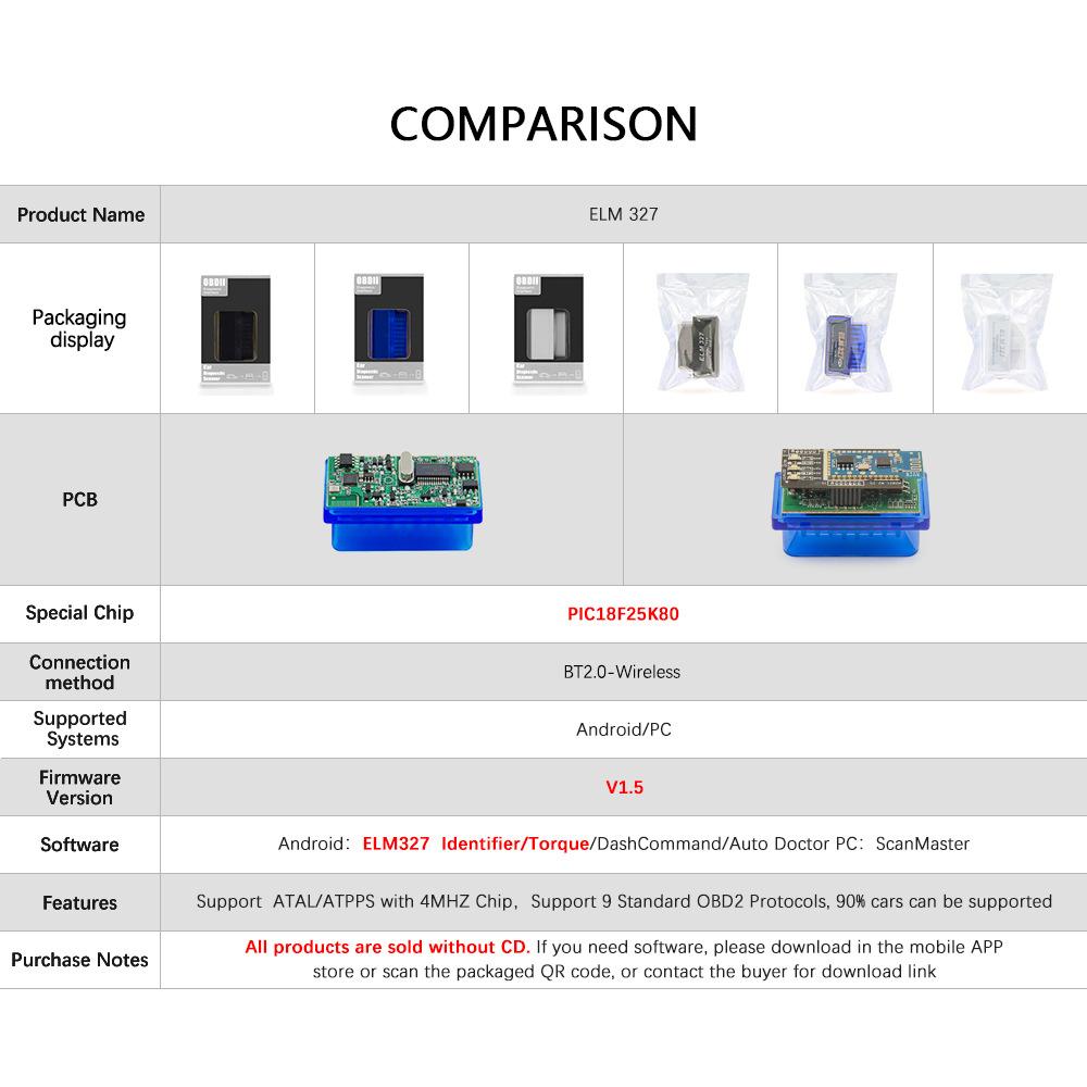 Adaptador de diagnóstico automotriz Bluetooth OBD2 super mini elm327 compatible con todos los sistemas de autodiagnóstico OBD-II y los protocolos de comunicación compatibles con él. Sus funciones incluyen 1. Lectura de códigos de falla de diagnóstico genéricos y específicos del fabricante del automóvil, y muestra sus definiciones (el software contiene más de 3000 códigos de falla) 2. Borrado de códigos de falla y apagado de la luz indicadora de falla del motor 3. Lectura del flujo de datos dinámicos en tiempo real del motor: RPM del motor, valor de carga calculada, temperatura del refrigerante, estado del sistema de combustible, velocidad del vehículo, ajuste de combustible a corto plazo, ajuste de combustible a largo plazo, presión del colector de admisión, avance de encendido, temperatura del aire de admisión, flujo de aire, posición del acelerador, voltaje del sensor de oxígeno/ajuste fino de combustible a corto plazo, presión de combustible, etc.