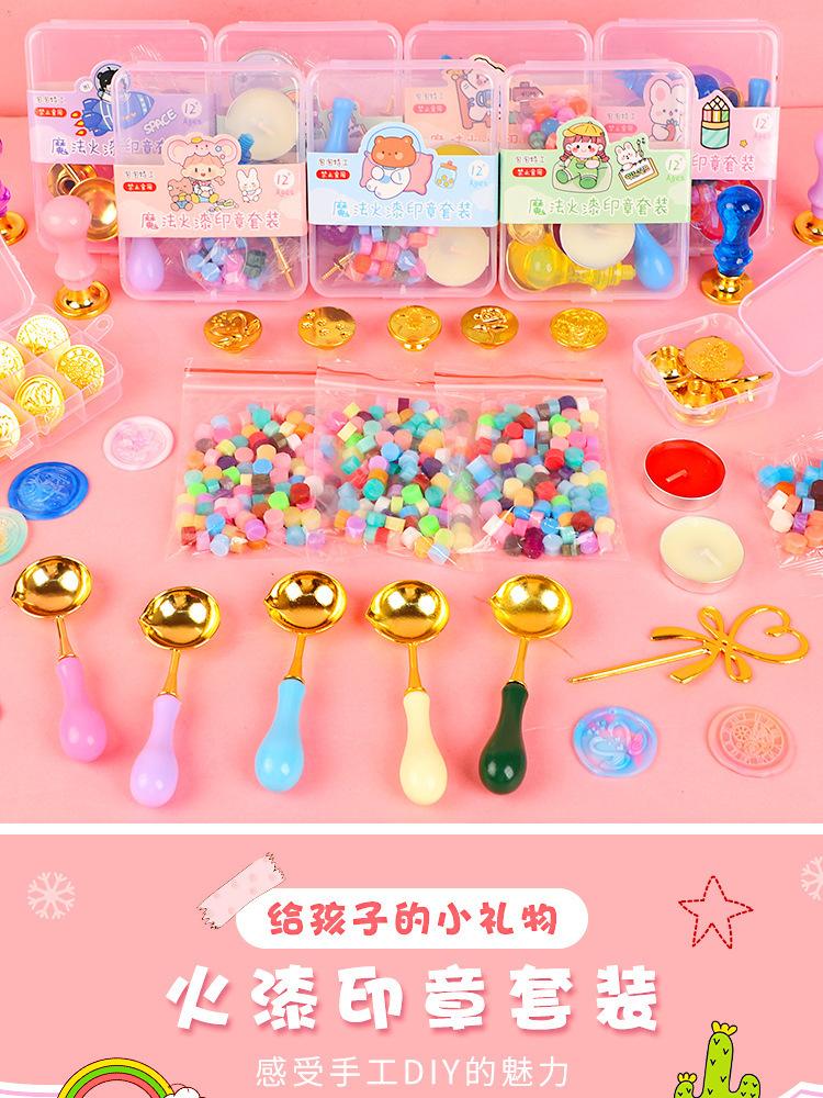 Traje creativo de sello de pintura de fuego juego completo de estudiantes hecho a mano DIY bolsa de material vela sello de pintura de fuego sobre