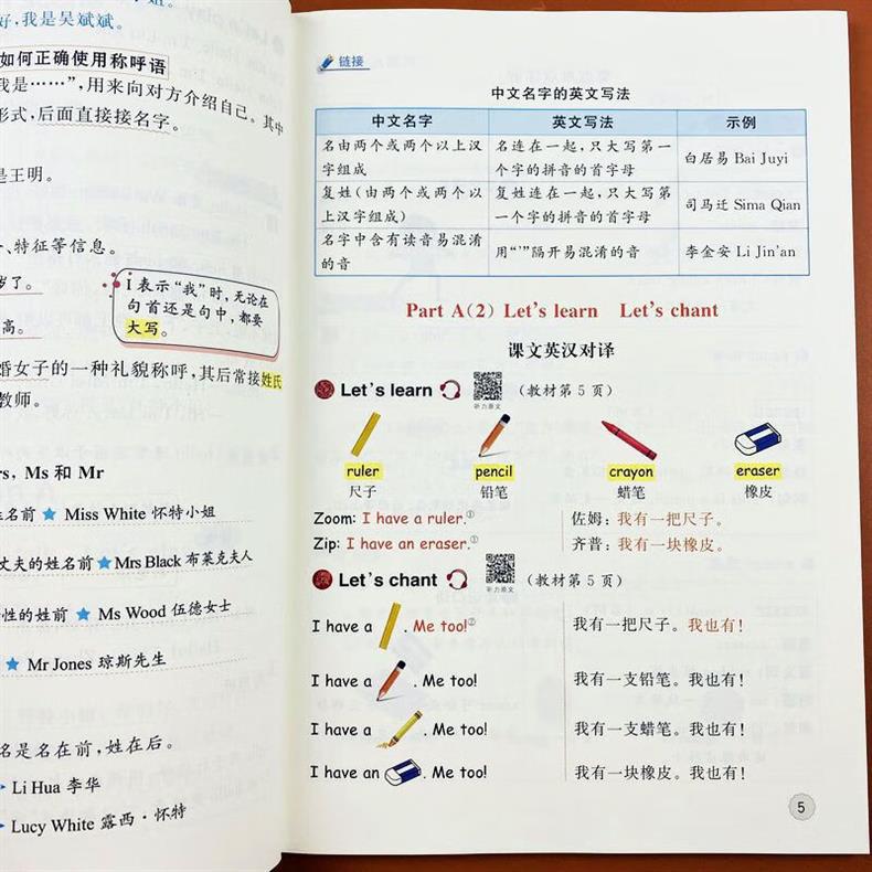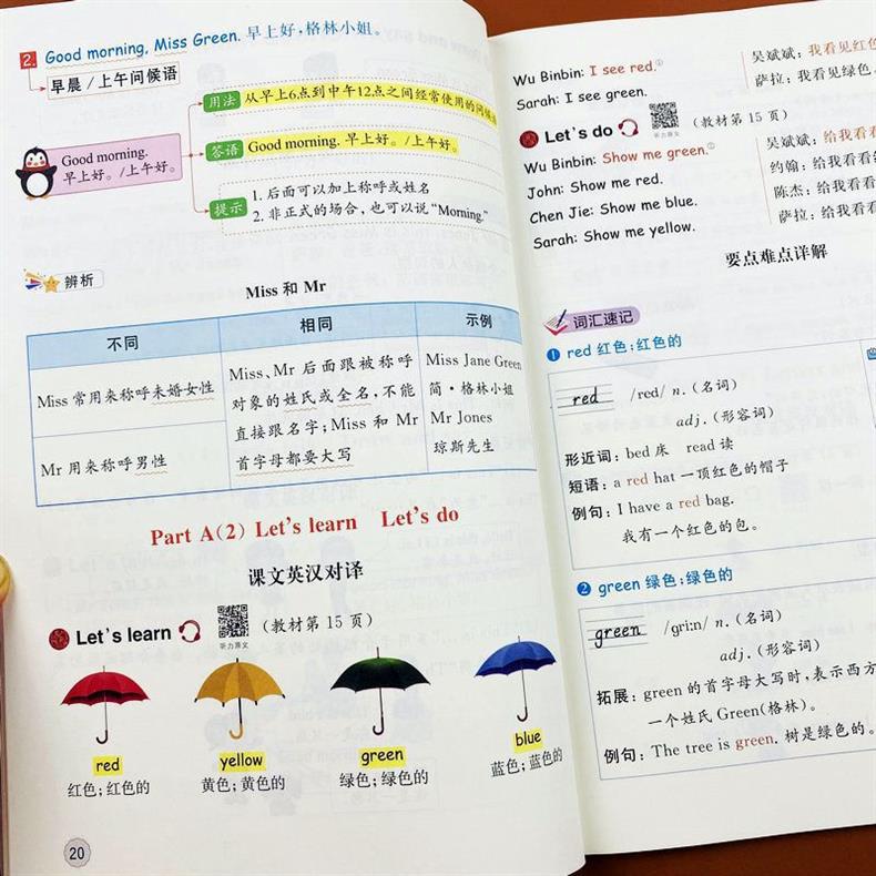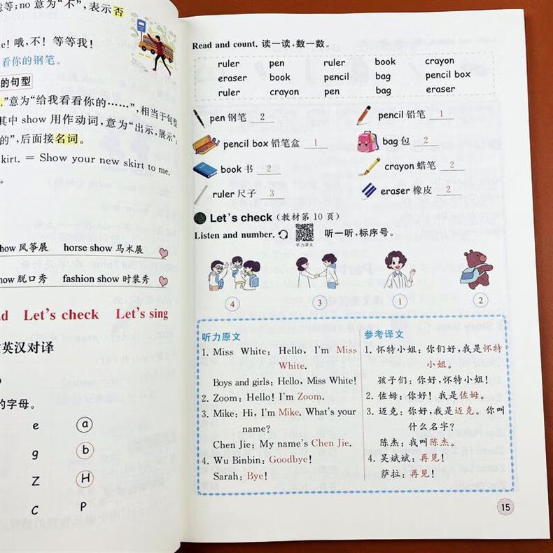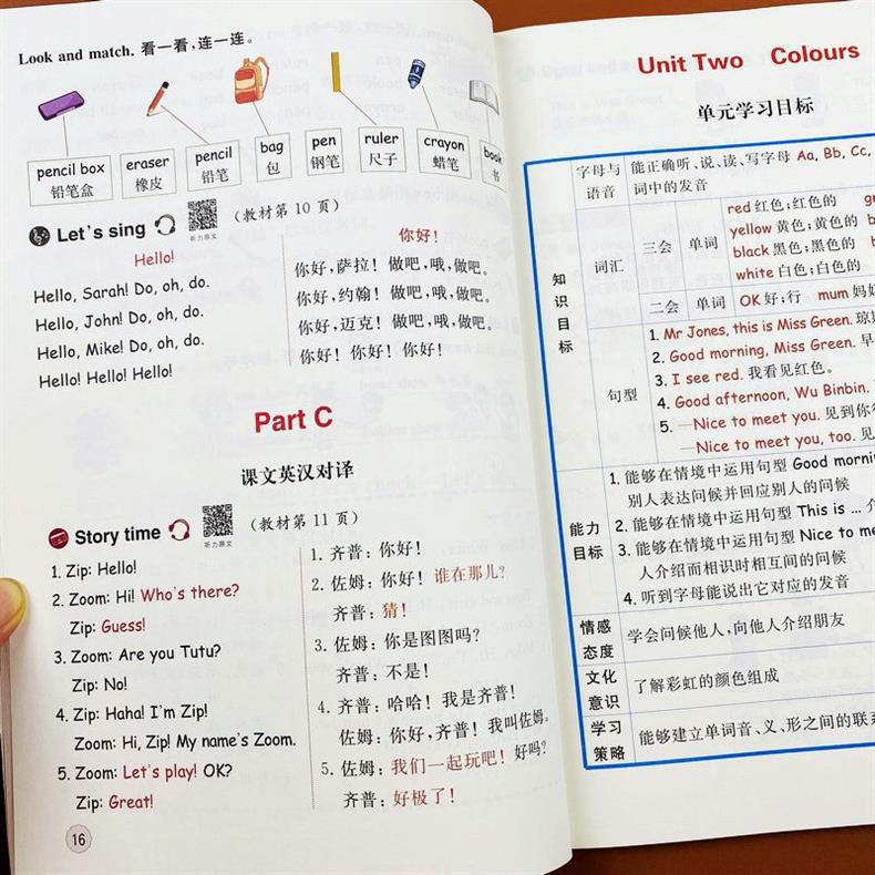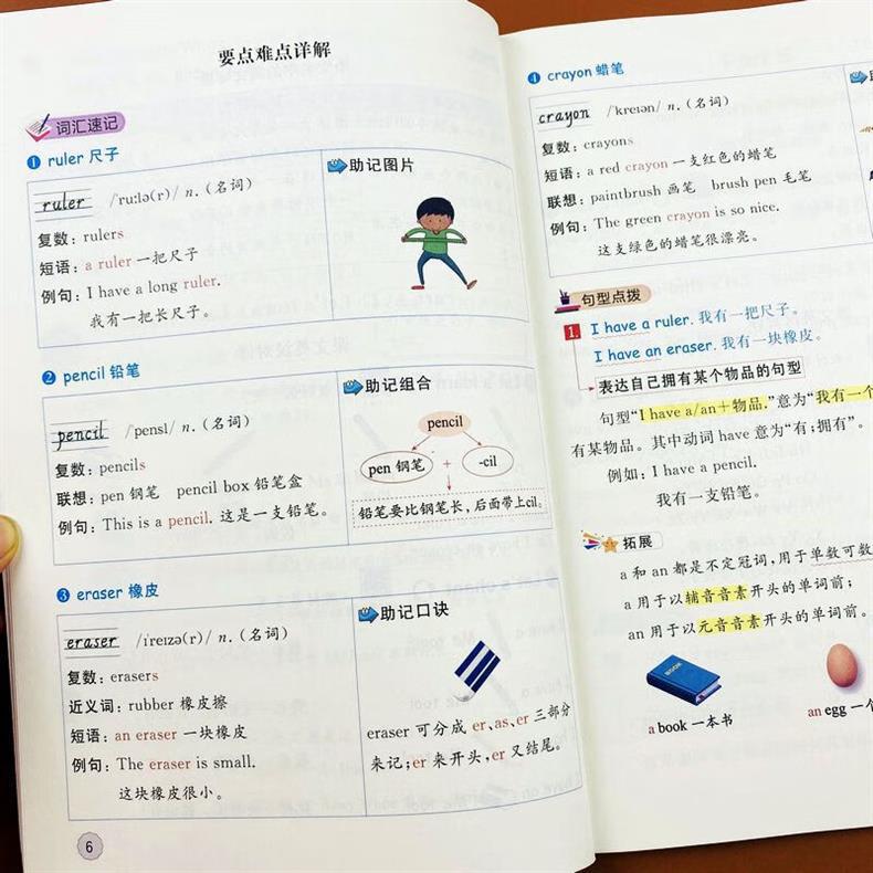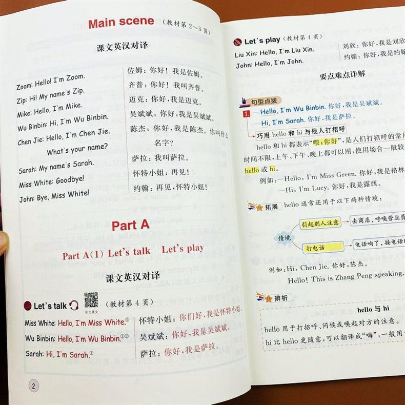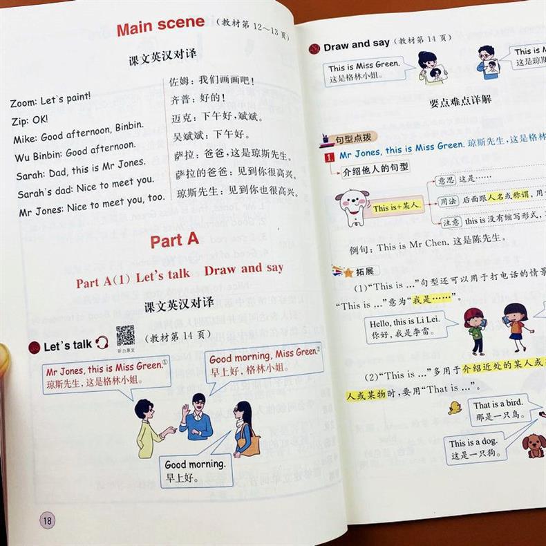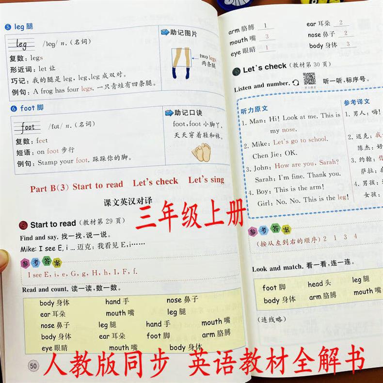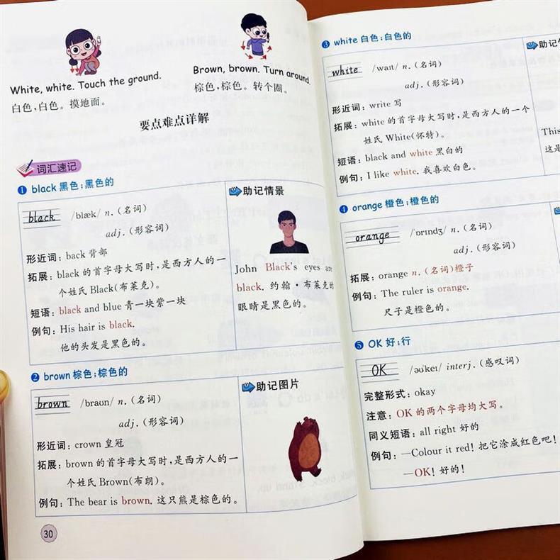 Los libros de texto en inglés sincronizan los libros de texto para explicar el primer volumen de palabras y oraciones en inglés de tercer grado con puntos de conocimiento de traducción.