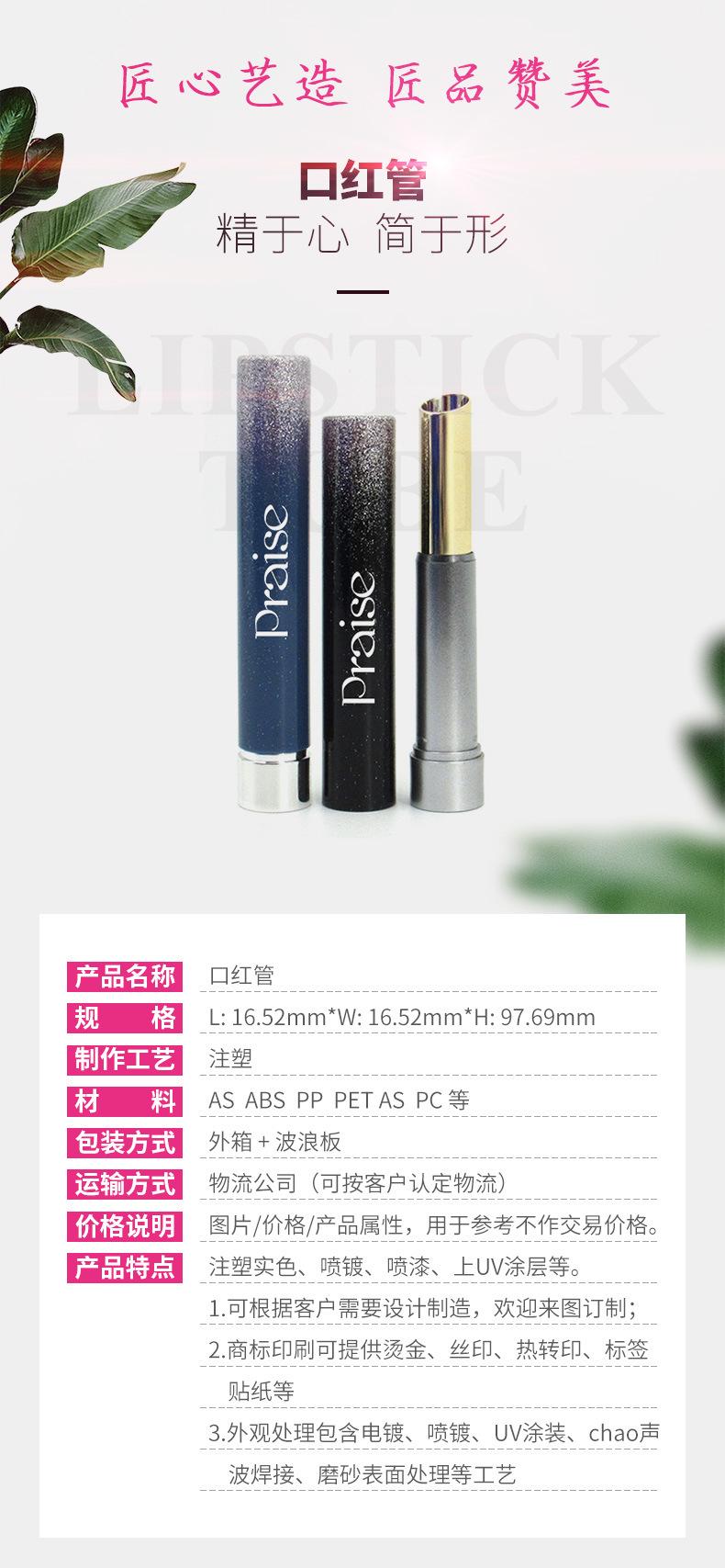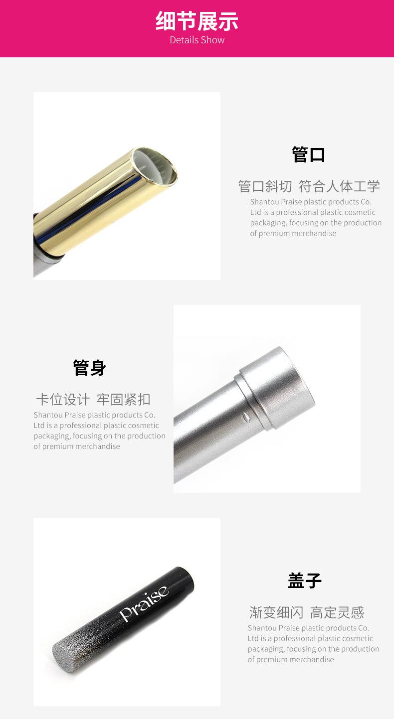 Tubo vacío de lápiz labial cosmético largo y delgado, redondo, brillante, delgado, moldeado por inyección, material de embalaje
