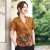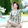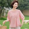 Camiseta de manga corta blanca de lino para madre de mediana edad, camiseta de mujer de verano 2024 nueva con cuello en V bordado, camiseta fina pequeña para mujer
