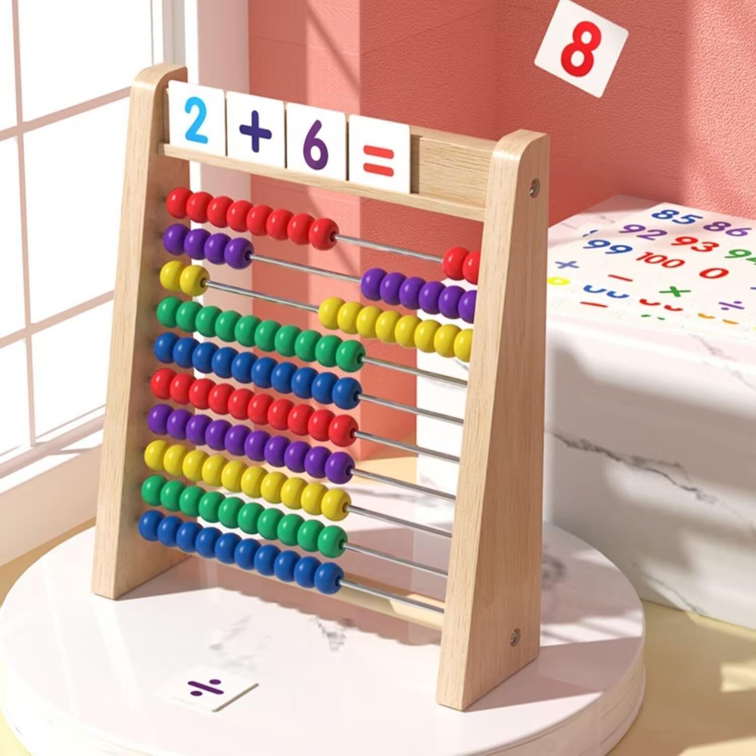 Marco de madera para cálculos aritméticos infantiles, operaciones matemáticas, suma y resta, material didáctico, contador, conexión joven, iluminación, reconocimiento de números.