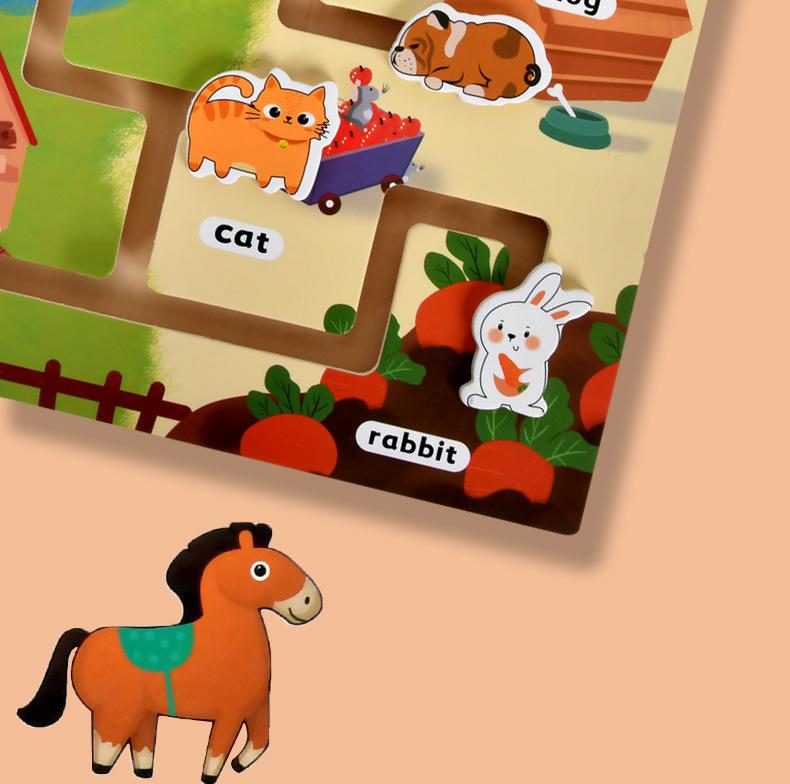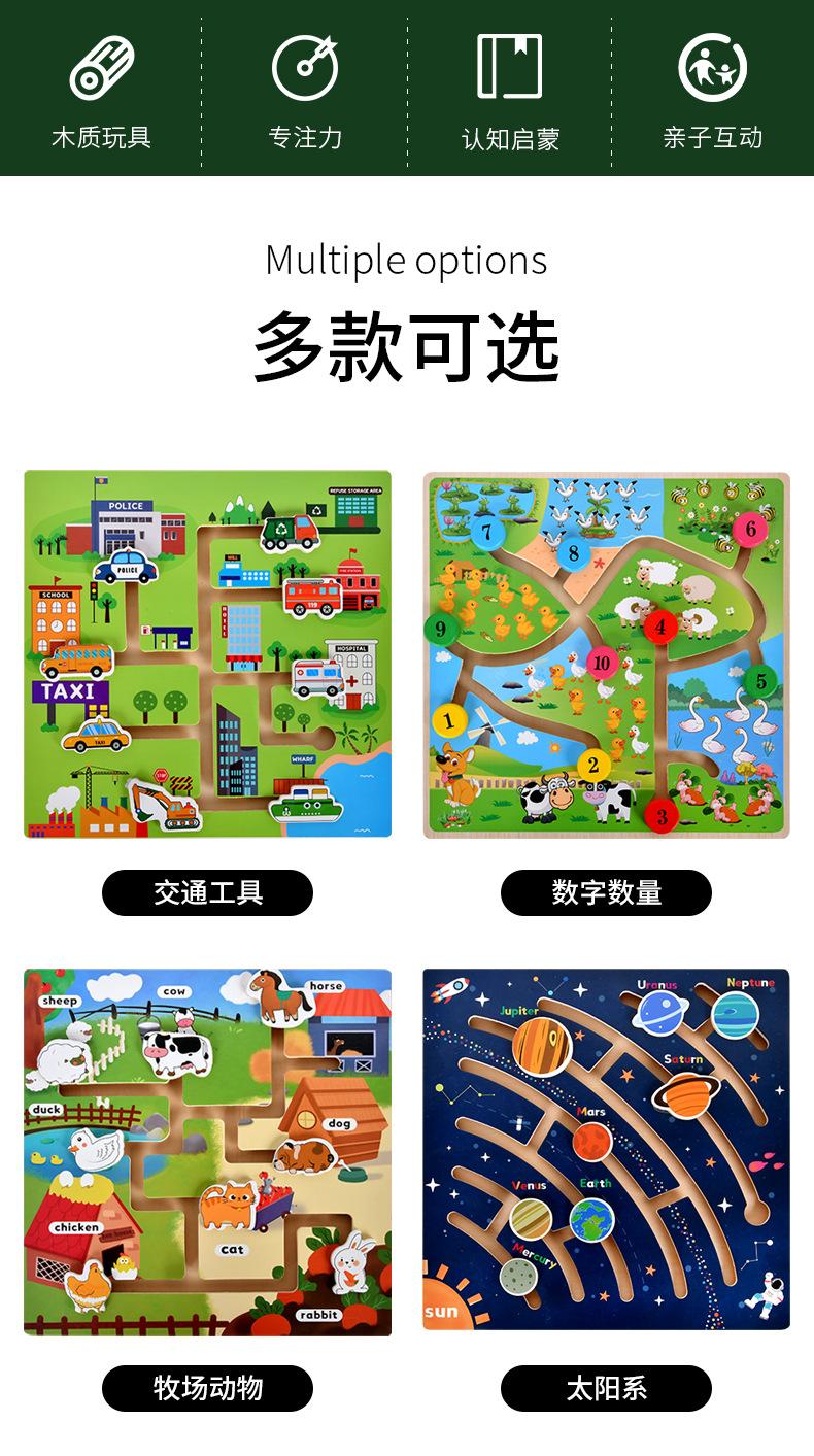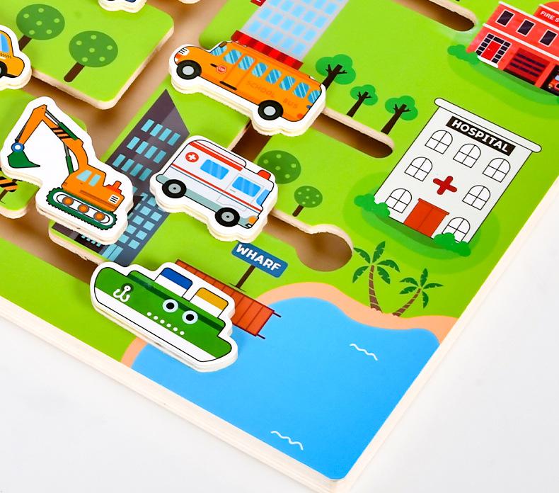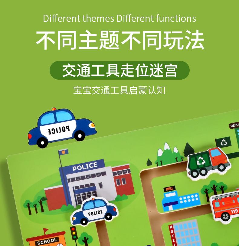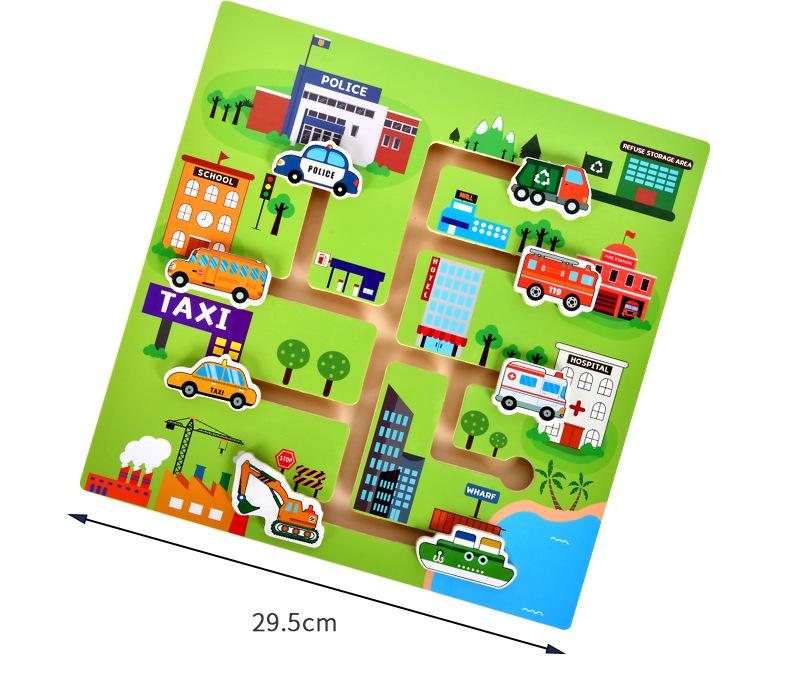 Laberinto cognitivo de animales de tráfico de educación temprana de madera para niños, juego de combinación de caminatas, juego de mesa educativo interactivo para padres e hijos, juguete