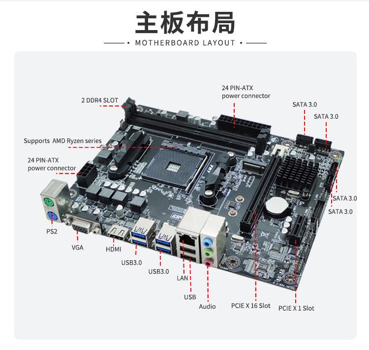 Tarjeta Madre A320 Amdam4 Gráficos Integrados Computadora de Escritorio Ddr4 Doble Canal M.2/Gigabit Ethernet Alta Compatibilidad Escritorio