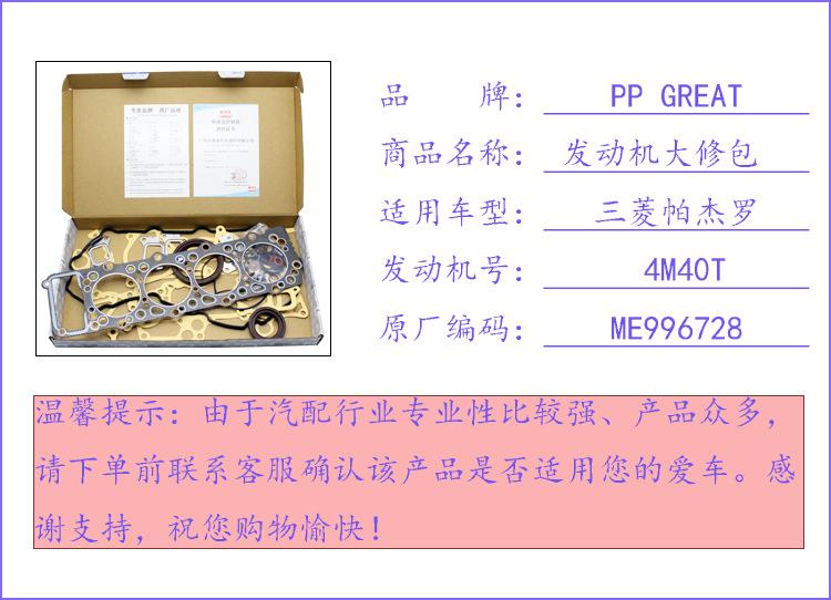 Adecuado para el kit de reparación de motor Mitsubishi Pajero 4M40T ME996728, junta de cilindro, sello de aceite, almohadilla de cubierta de válvula