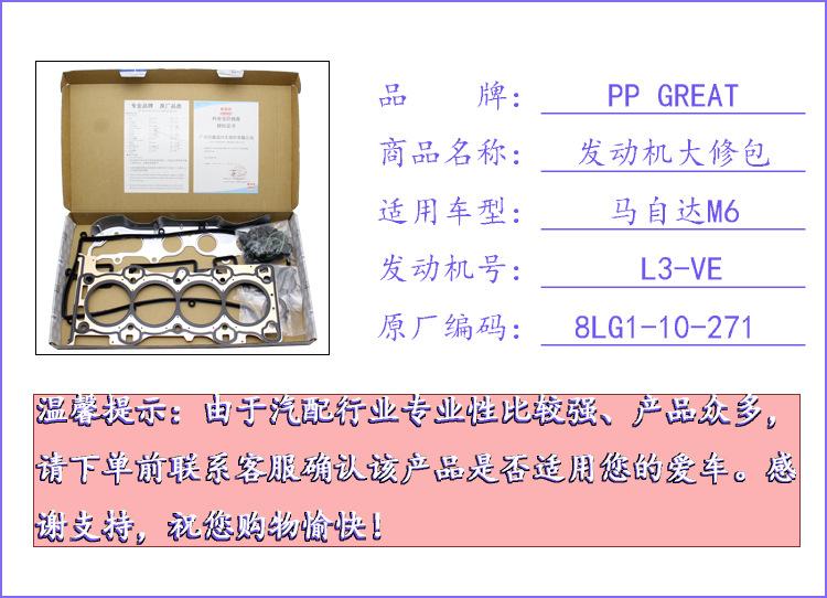 Aplicable al kit de reparación del motor Mazda M6 Atz L3-VE 8LG1-10-271 Junta del cilindro Sello de aceite