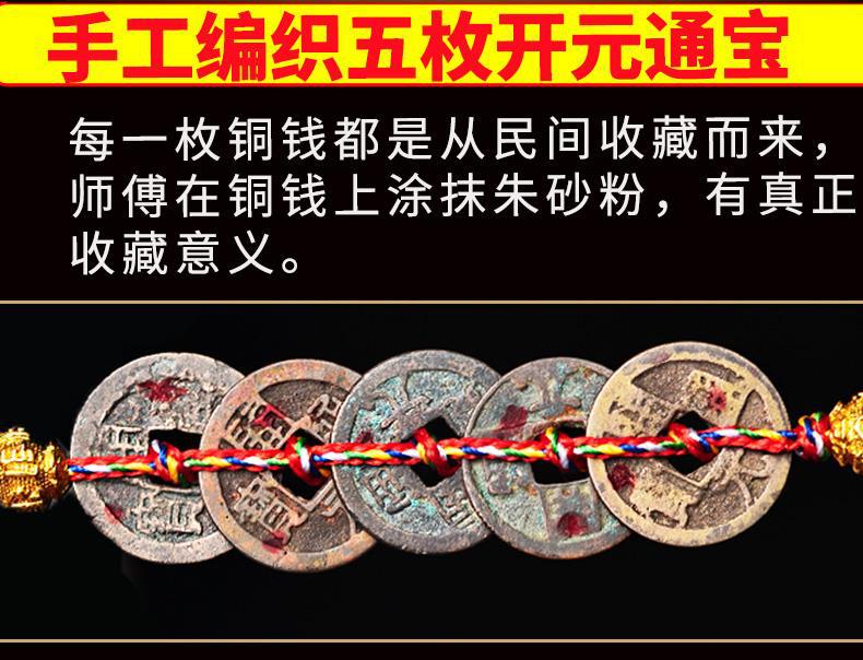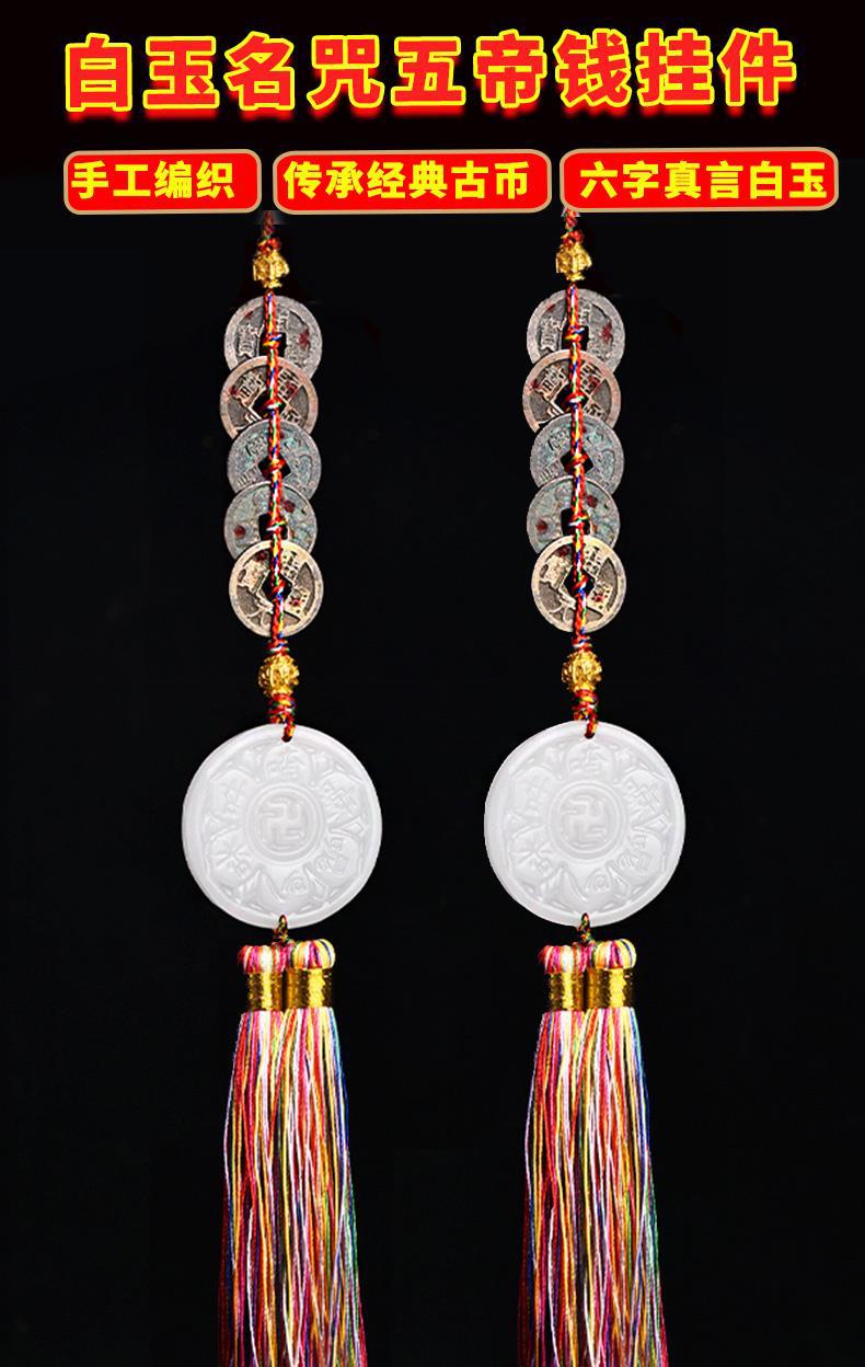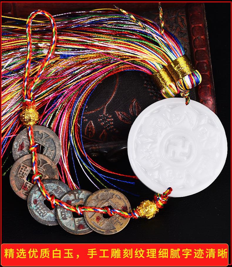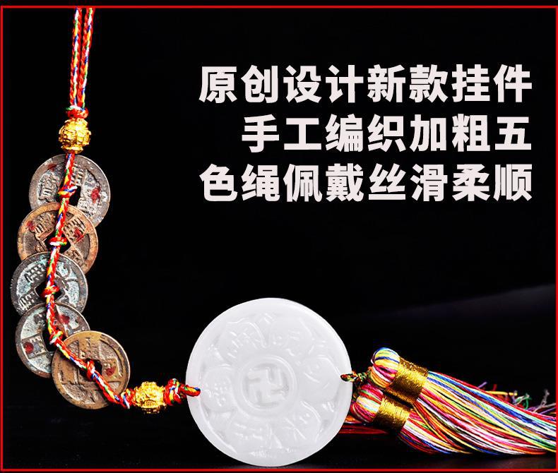 Guanyin inspiration Jade Kaiyuan Tongbao pendant (Diamond multicolored rope point cinnabar)