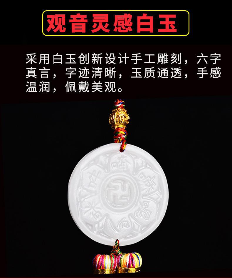 Colgante de jade blanco natural Guanyin con punta de jade cinabrio Kaiyuan Tongbao, mantra de seis caracteres de palabras verdaderas, mantra del corazón de Guanyin, dinero de cobre
