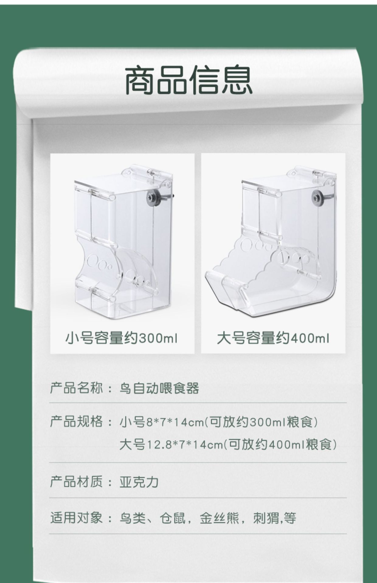 [splashproof] bird food box with inside 400ml, [external hanging model] parrot automatic feeder all-in-one mac...