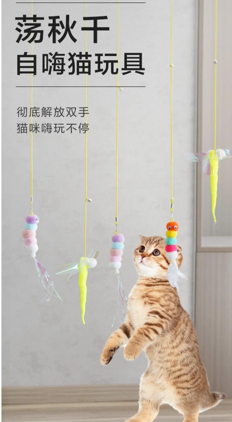 Juguete para gato palo para gato pluma campana auto alivio colgante puerta columpio resistente a mordidas ratoncito suministros para juguete de gato