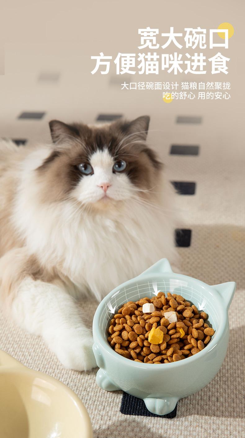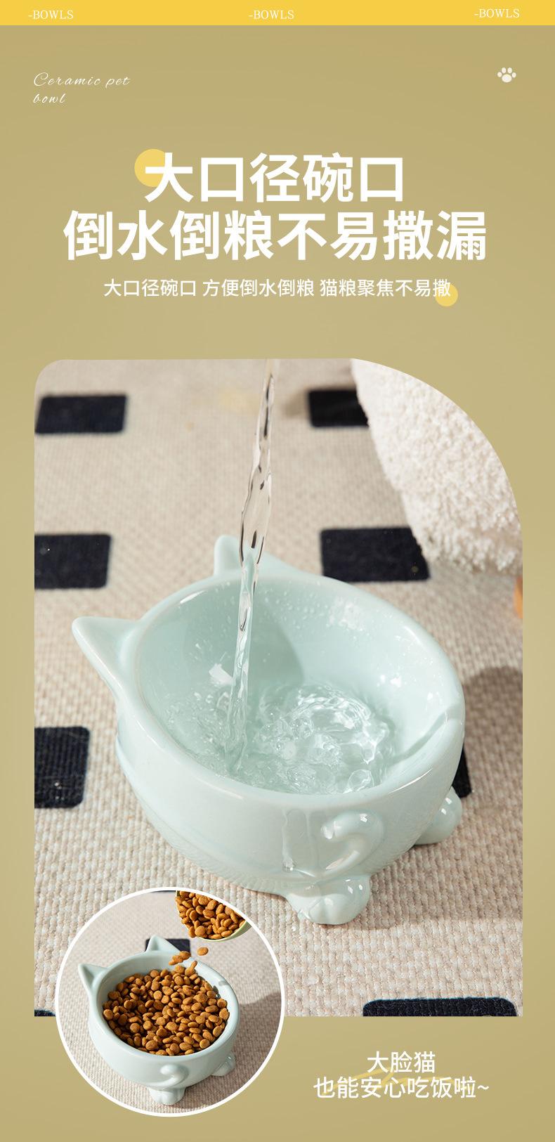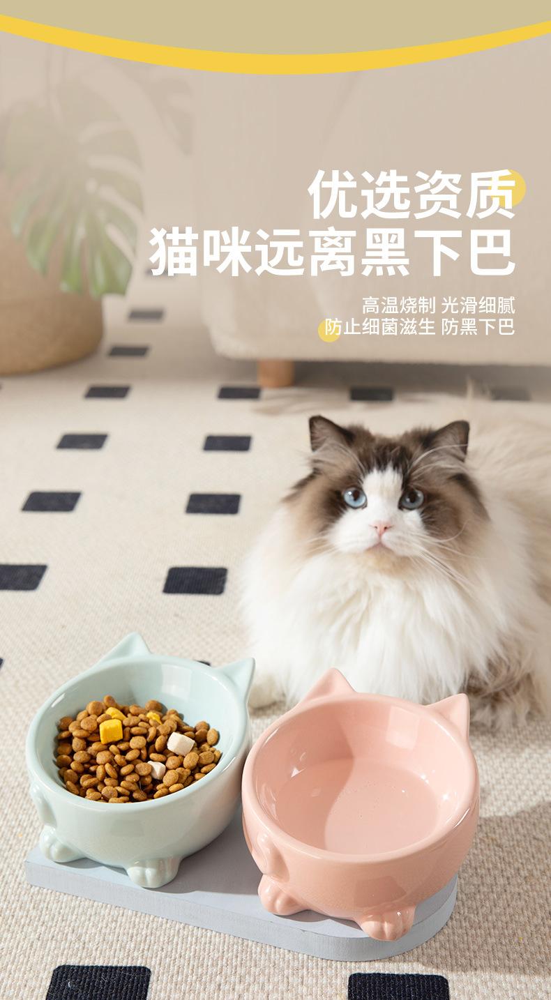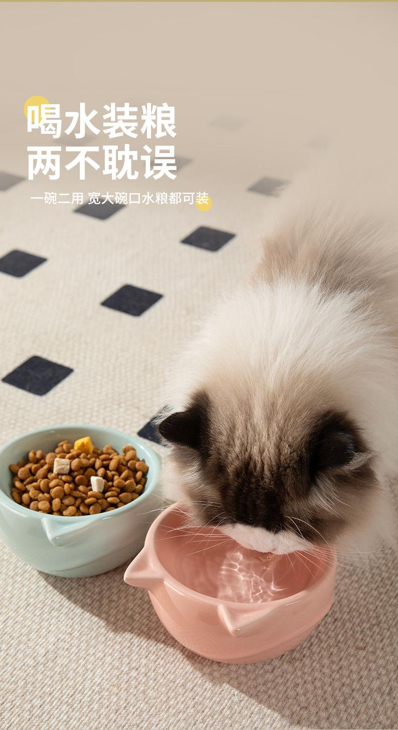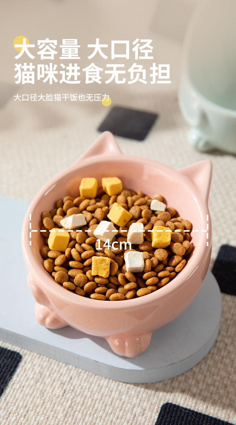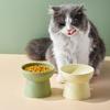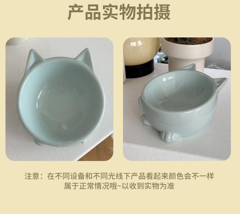 Cuenco de arroz de cerámica para gatos, cuenco doble con patas altas para la vértebra cervical, cuenco protector de agua potable para gatos, cuenco inclinado para mascotas con protección para el cuello.