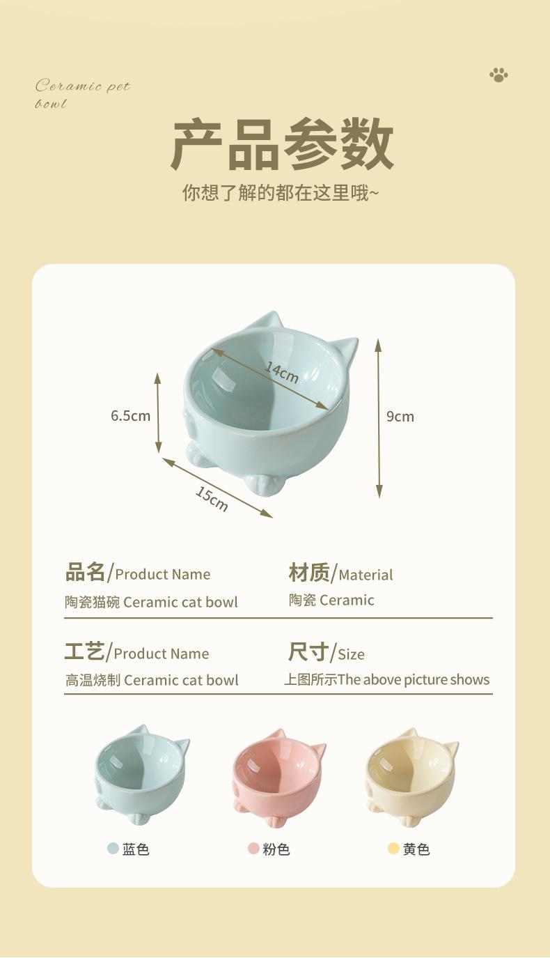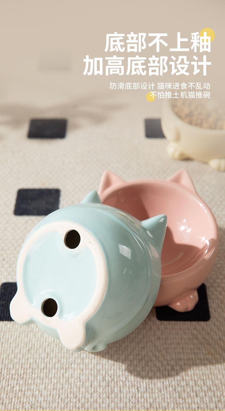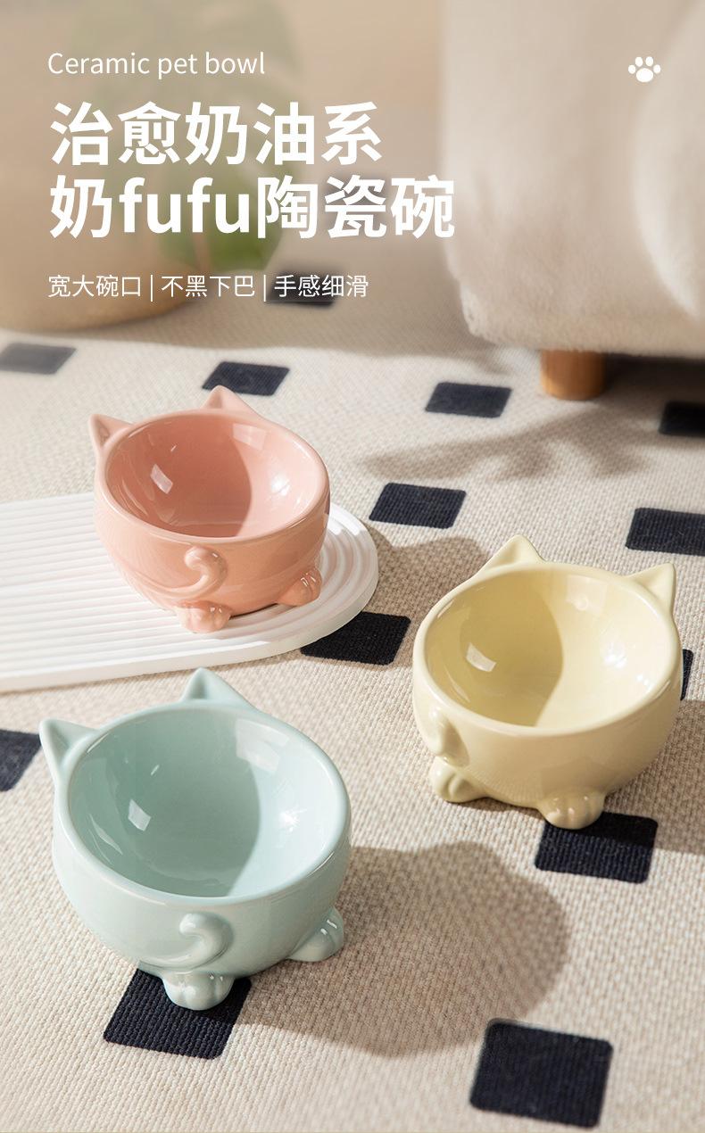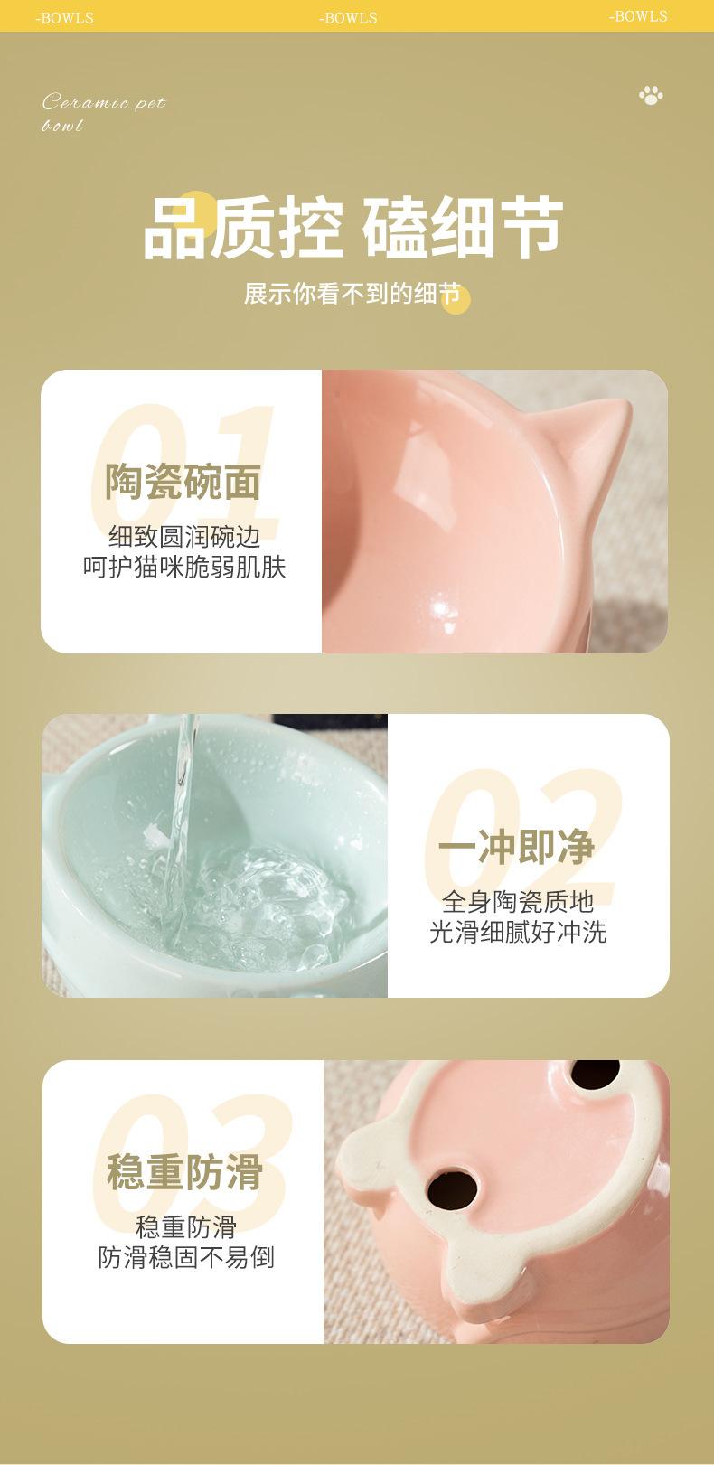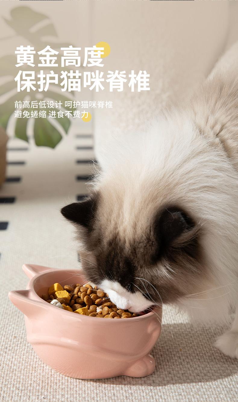 Cuenco de arroz de cerámica para gatos, cuenco doble con patas altas para la vértebra cervical, cuenco protector de agua potable para gatos, cuenco inclinado para mascotas con protección para el cuello.
