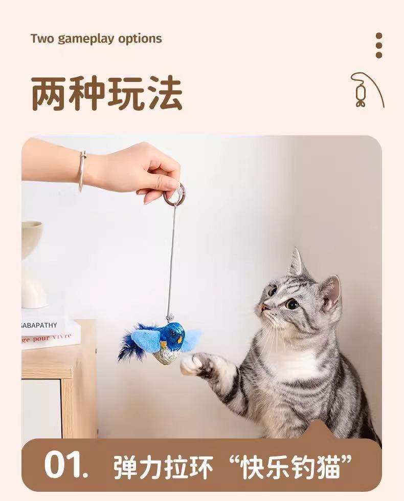 Nuevo juguete para gatos con sonido de simulación, juguete de pájaro para gatitos para aliviar el aburrimiento, autoadhesivo, resistente a los arañazos, mordeduras colgantes, suministros para mascotas para gatos