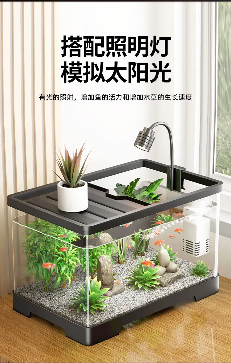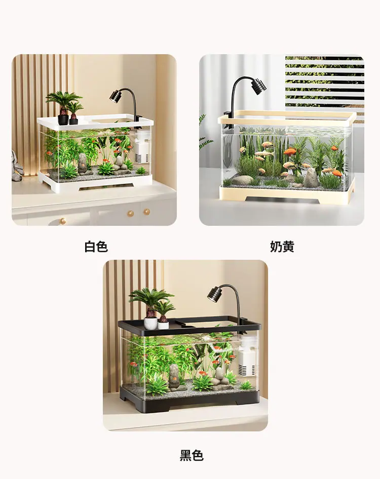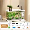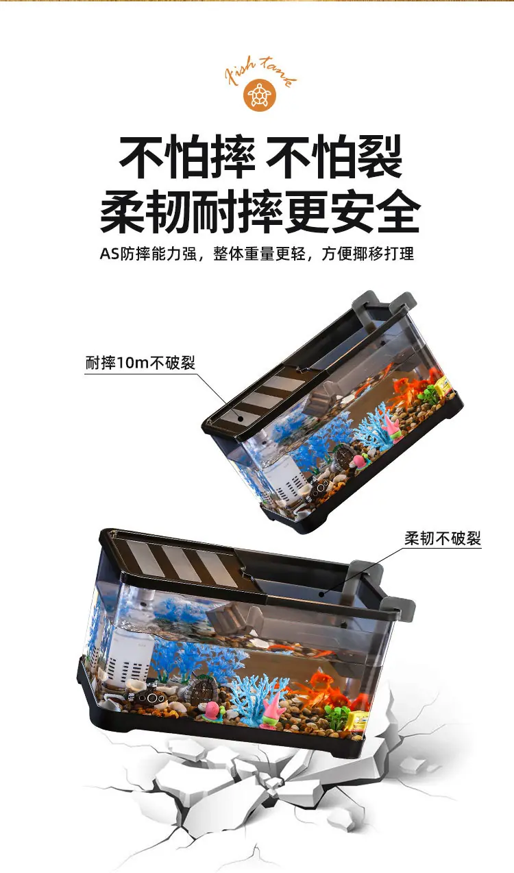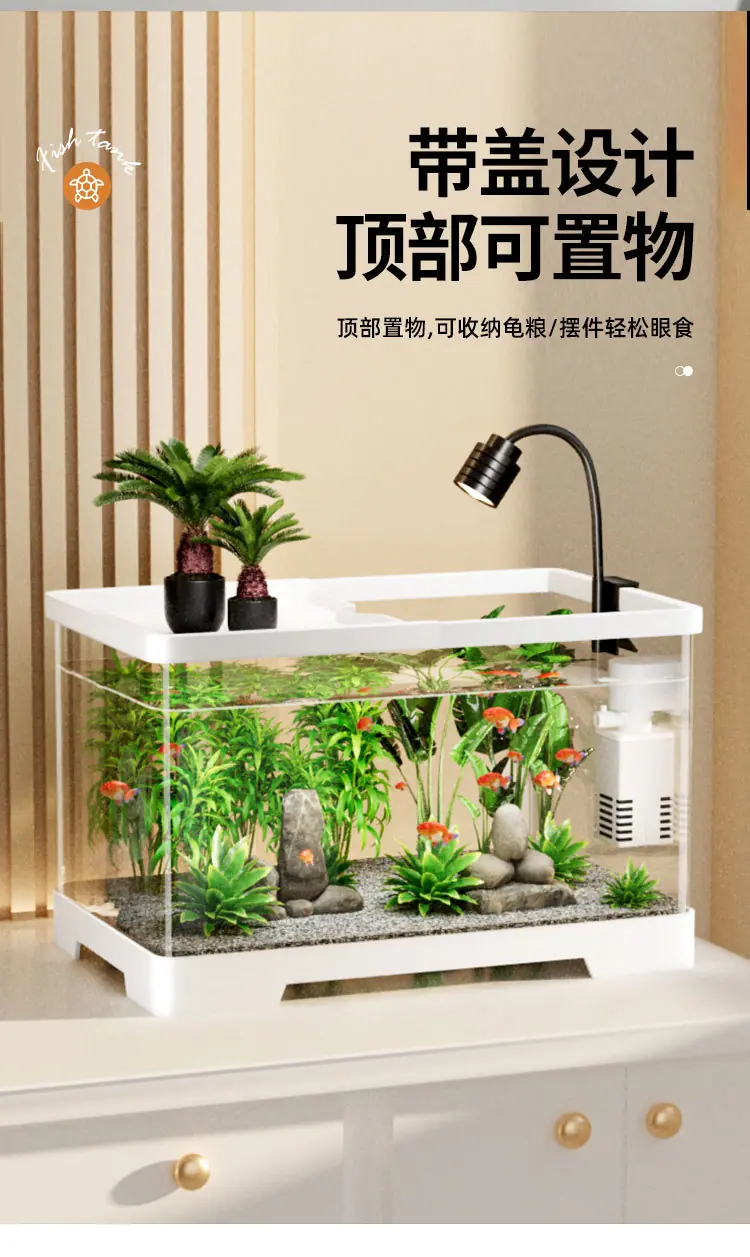 Acuario de Escritorio de Plástico para Hogar con Filtración Integrada para Sala de Estar, Tanque para Tortugas, Tanque Dedicado para Corrientes Ecológicas