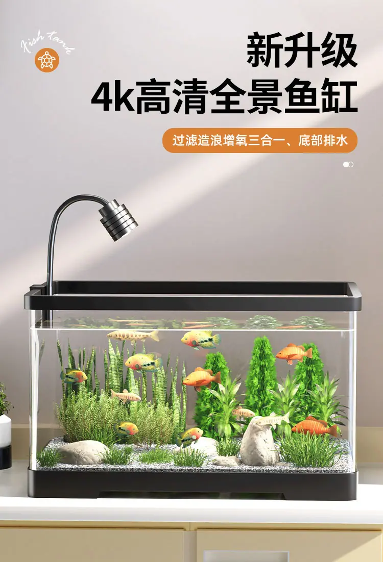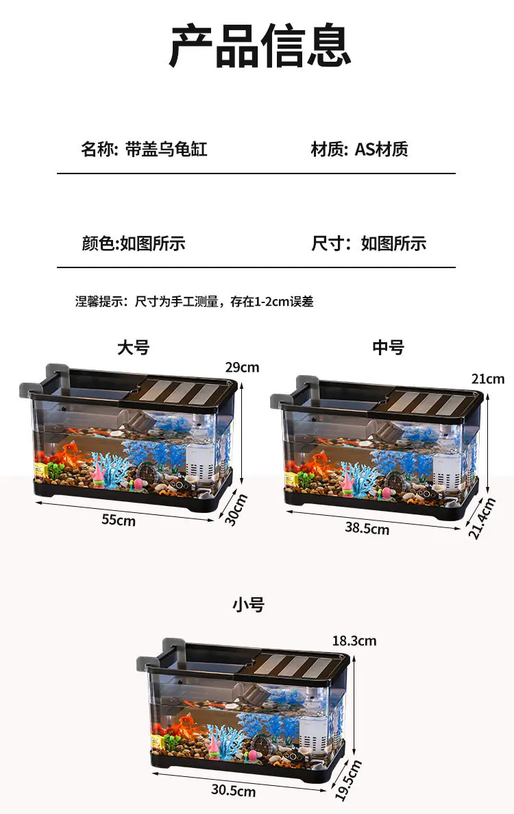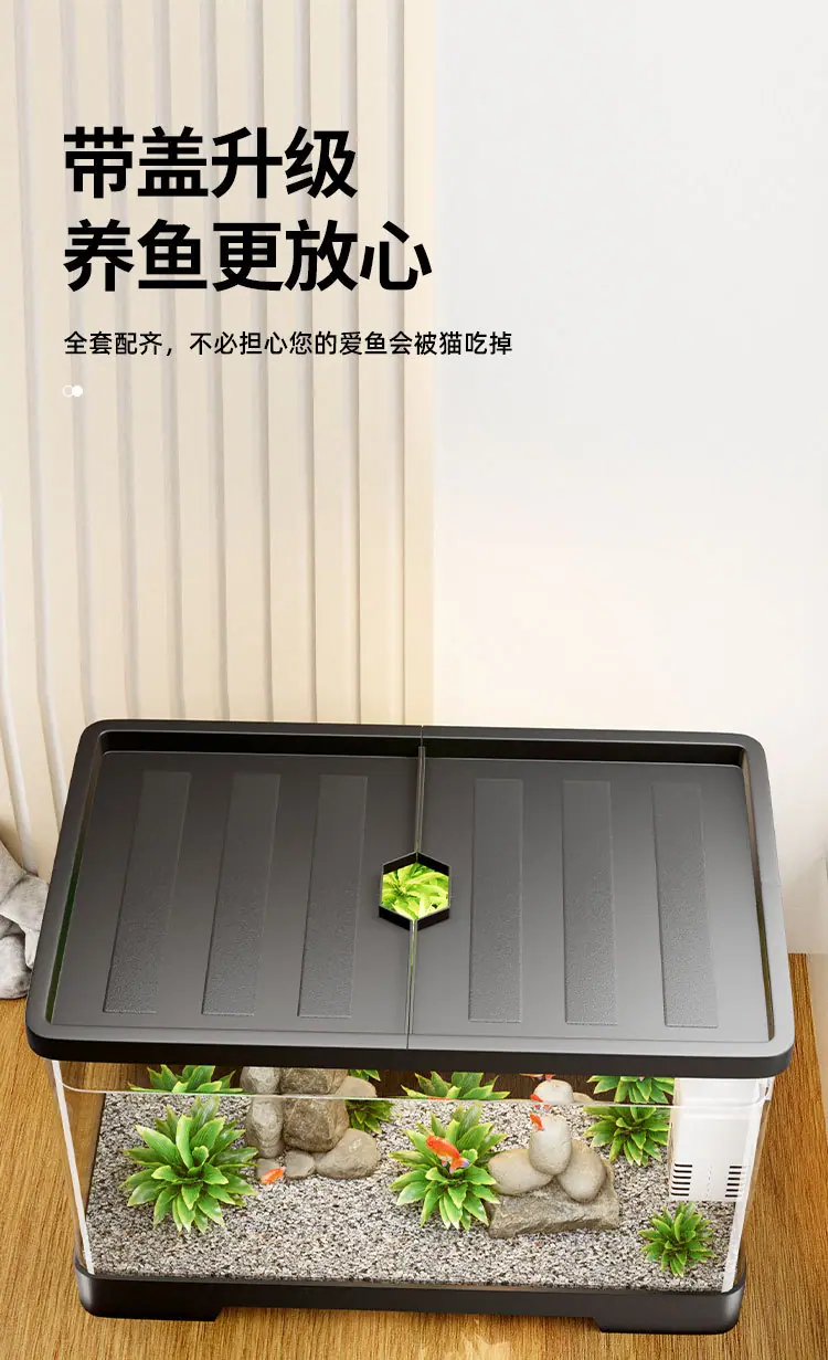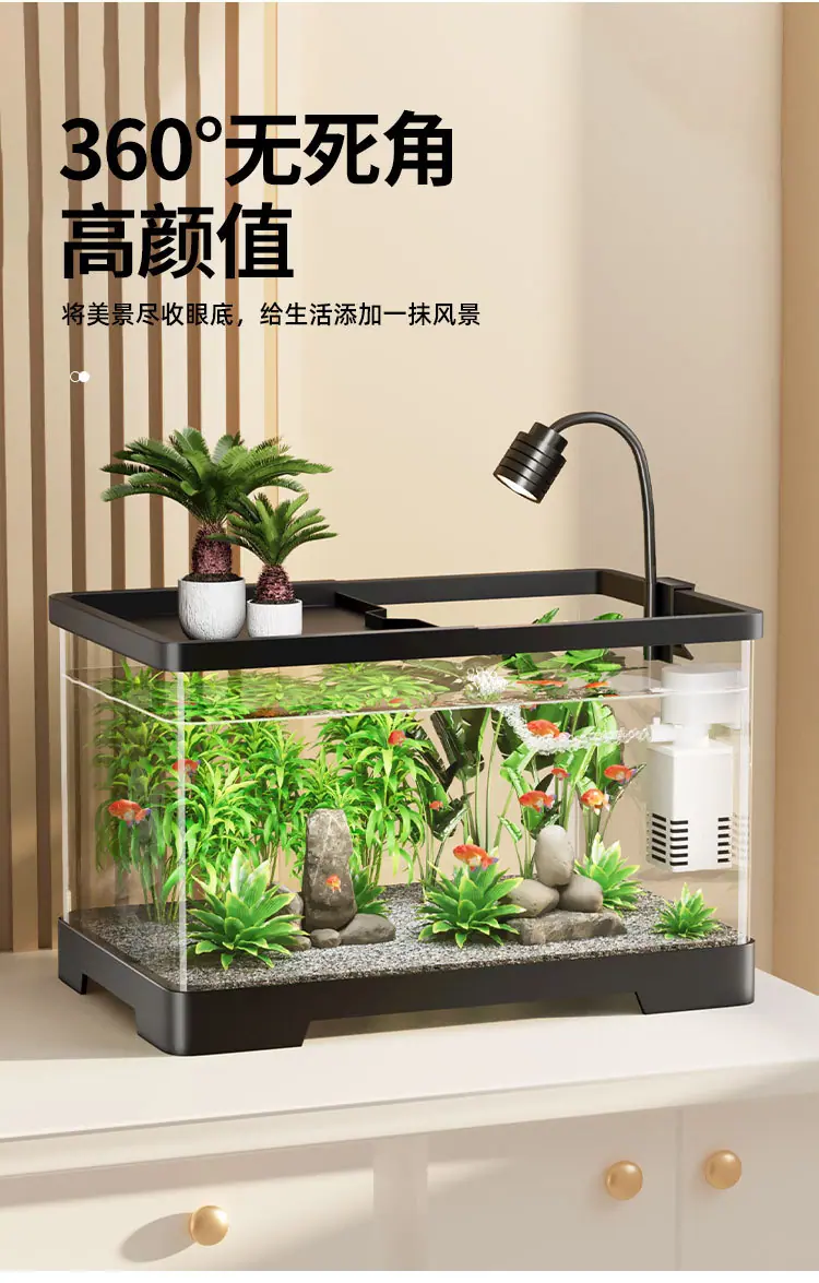 Acuario de Escritorio de Plástico para Hogar con Filtración Integrada para Sala de Estar, Tanque para Tortugas, Tanque Dedicado para Corrientes Ecológicas