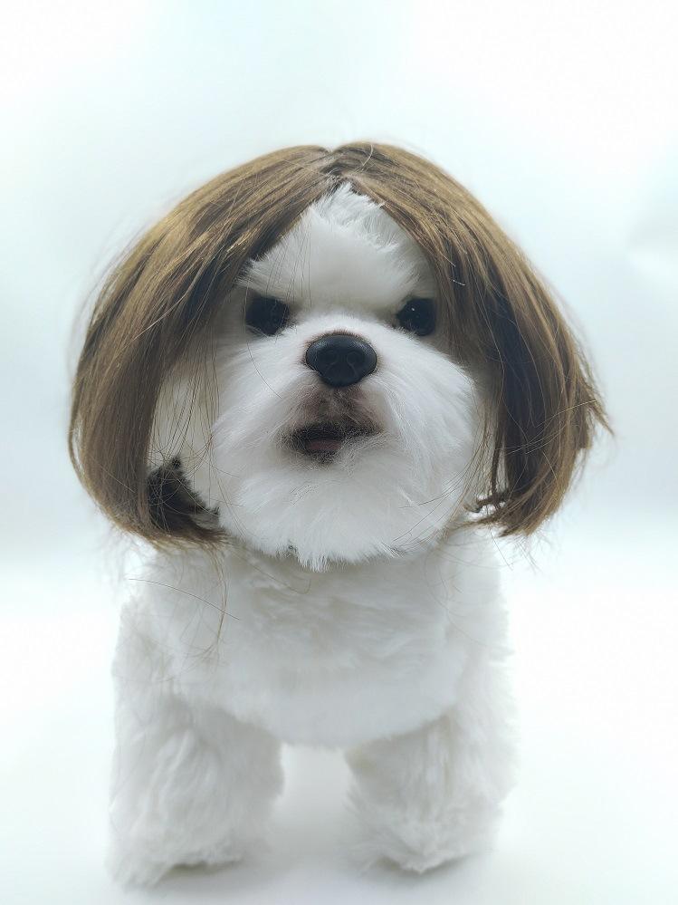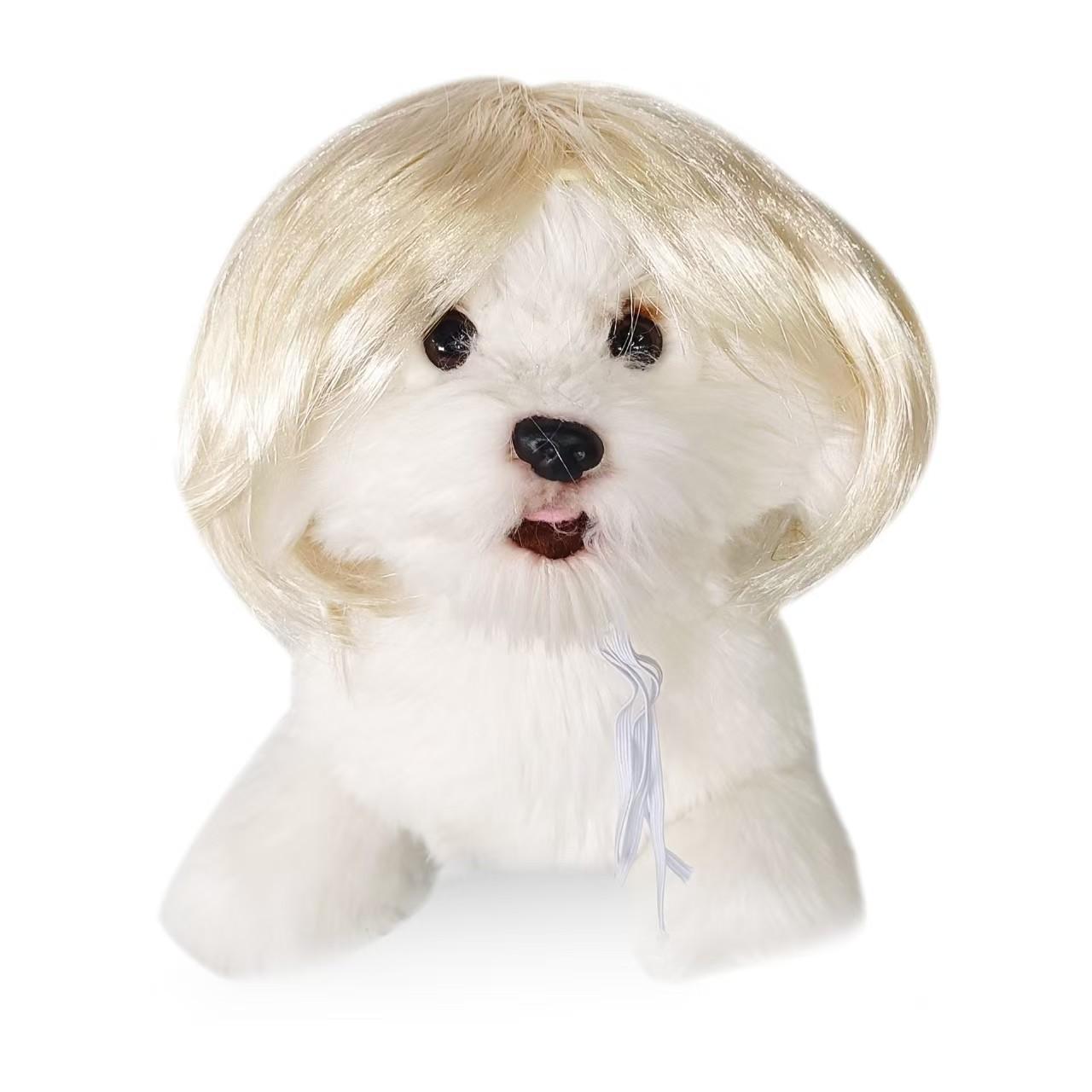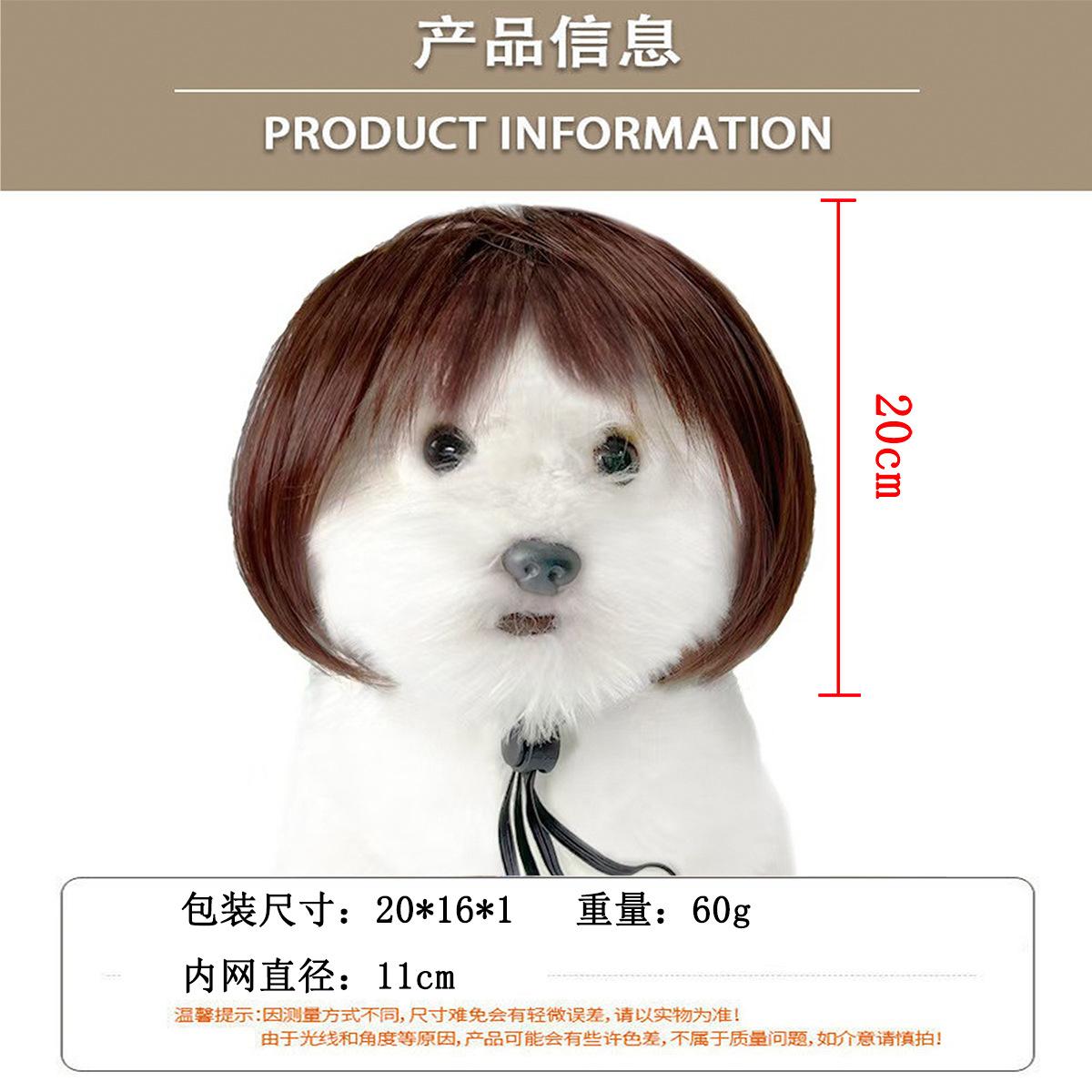 Peluca nueva transfronteriza para mascotas, cabeza bobo, cabello corto, mascota, gato, perro, joyería universal, linda peluca corta con flequillo