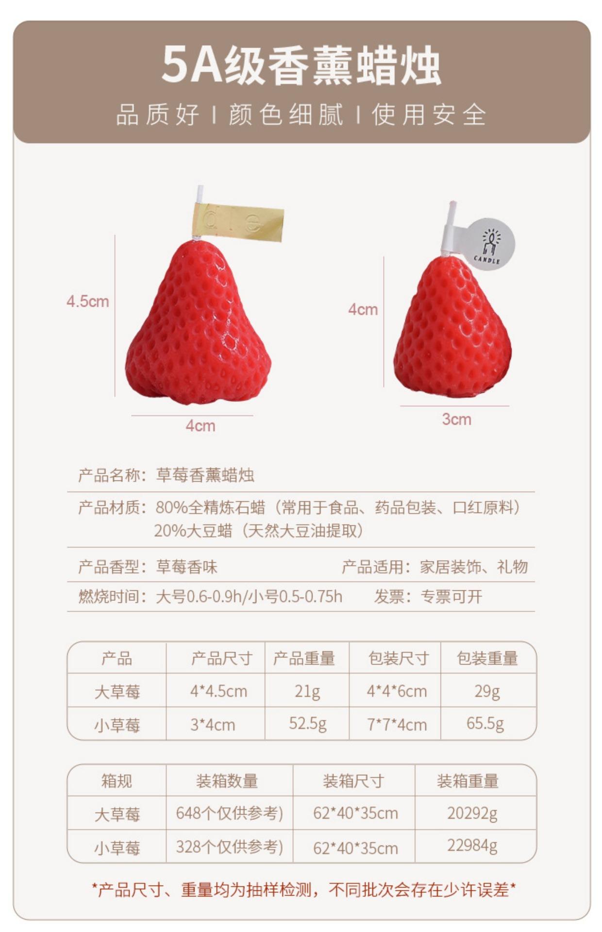 Large single - red strawberry candle, 4 small size - red strawberry candles, 4 small size - pink strawberry ca...